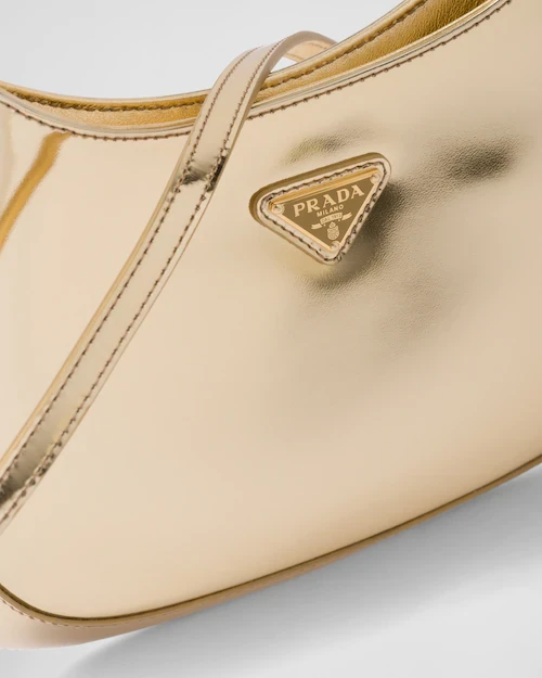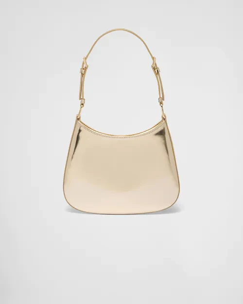The Prada Cleo bag with sophisticated allure reinterprets an iconic design of the brand from the '90s. The sleek, curved lines emphasized by the particular sloping construction on the bottom and sides give this hobo bag a soft, light look. Brushed leather, a distinctive material of Prada collections, is modern and versatile, perfect for always new combinations and contrasts. The enamel triangle logo completes the silhouette.