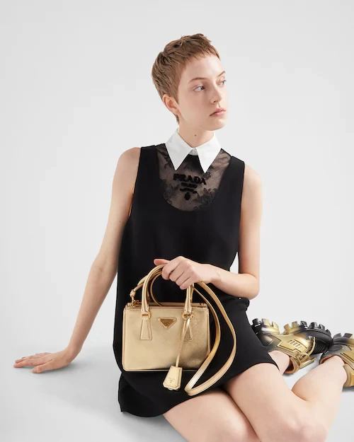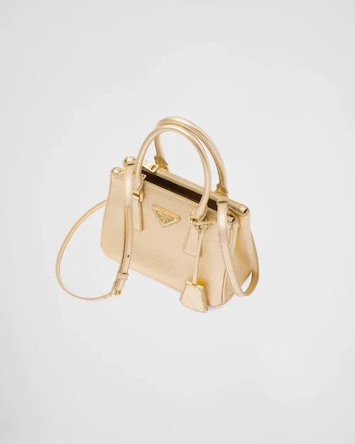 An expression of timeless elegance, the Prada Galleria bag is made of Saffiano leather, an iconic Prada material: a very high quality leather defined by its crosshatch texture and waxed finish. The accessory, presented with a luxurious metallic finish, owes its name to the historic Prada store opened in 1913 by Mario Prada in Galleria Vittorio Emanuele II of Milan.