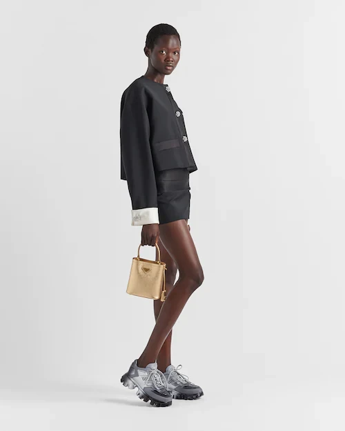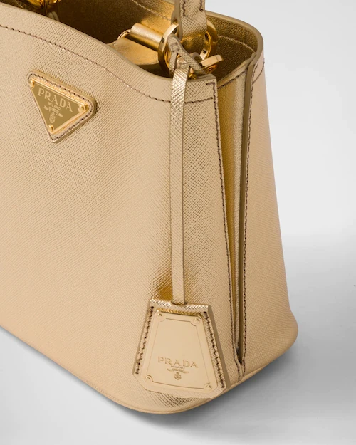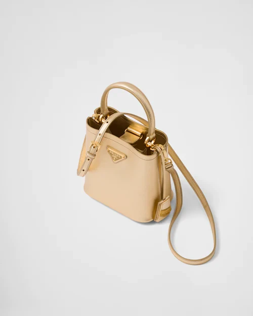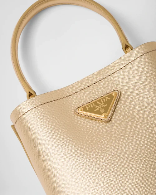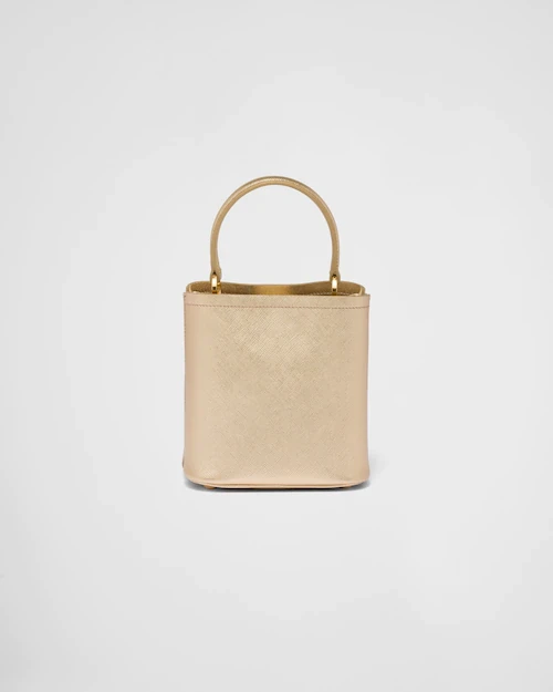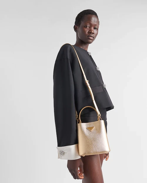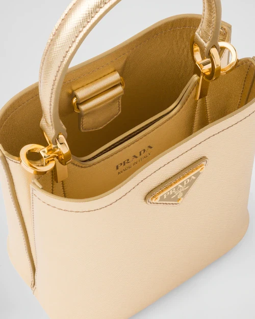 Defined by an elegant design, the Prada Panier bag is made of Saffiano leather, an iconic material of the brand characterized by its crosshatch texture and waxed finish. The bag has a detachable shoulder strap and an exclusive key ring with logo.