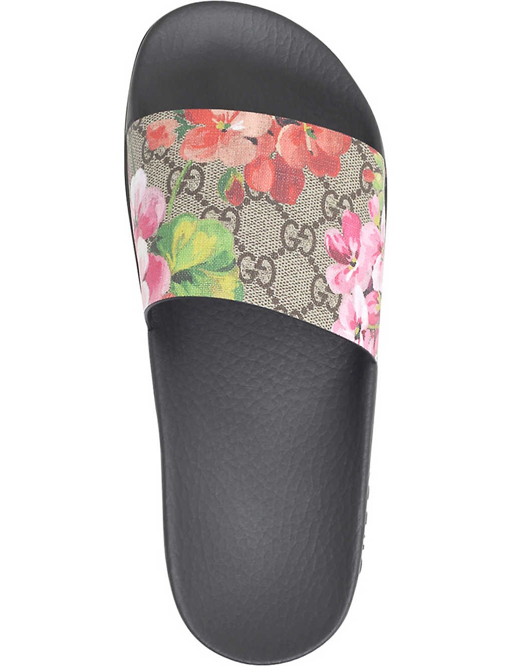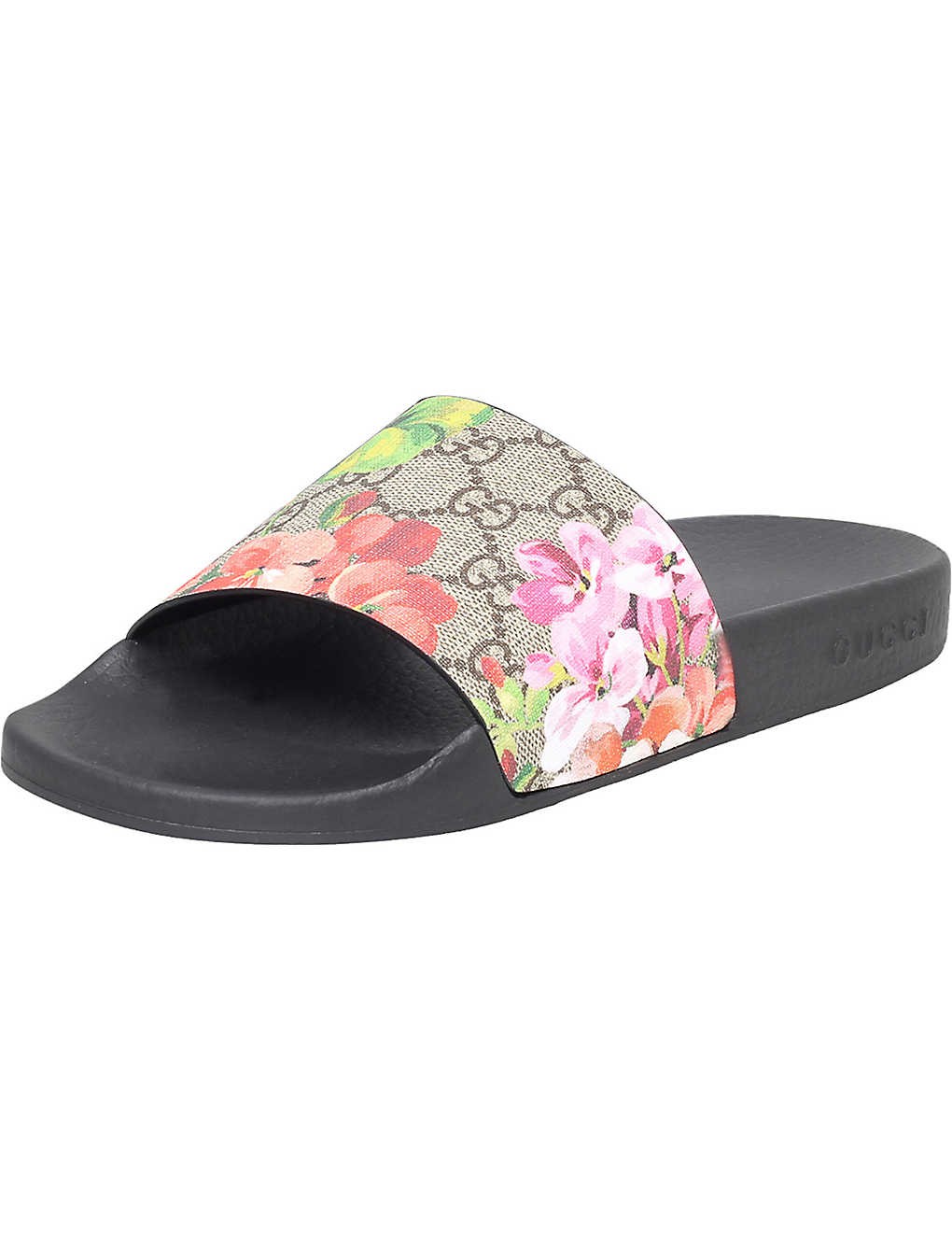 Pursuit floral-print leather sliders