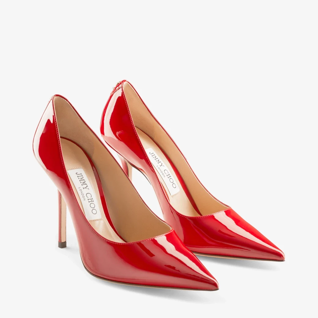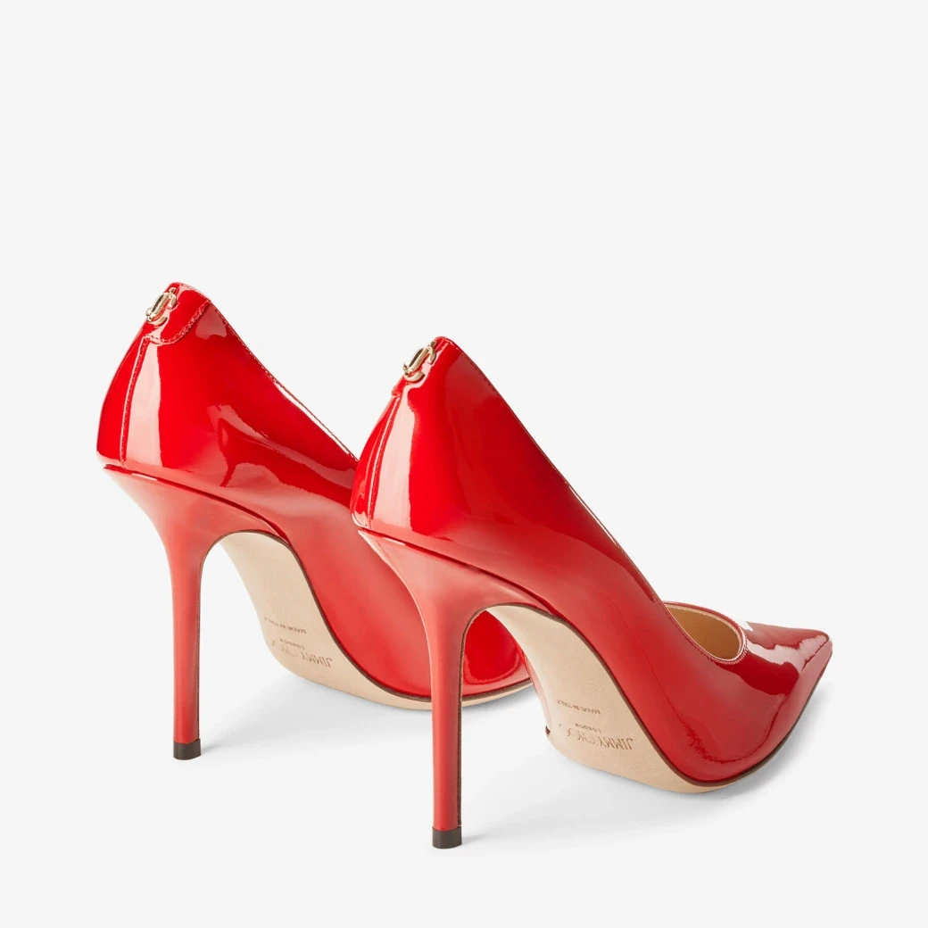 Red Patent Leather Pointed-Toe Pumps with JC Emblem