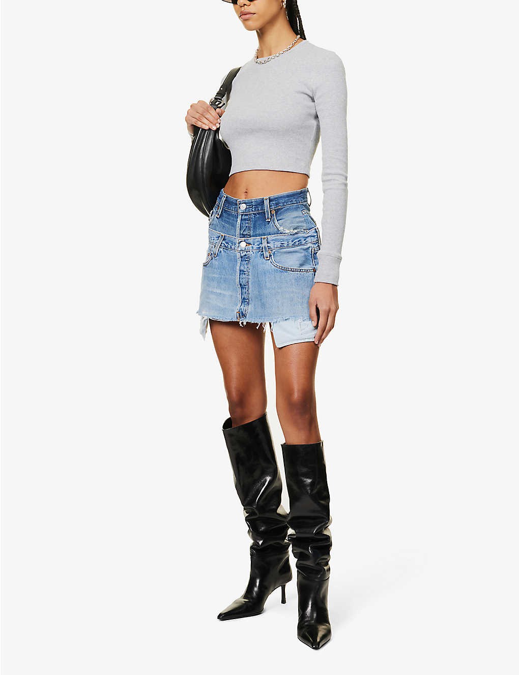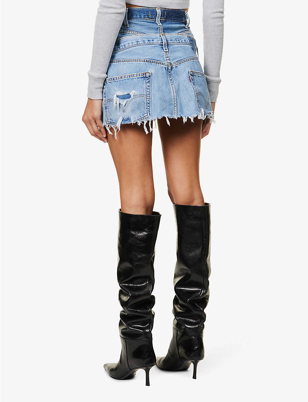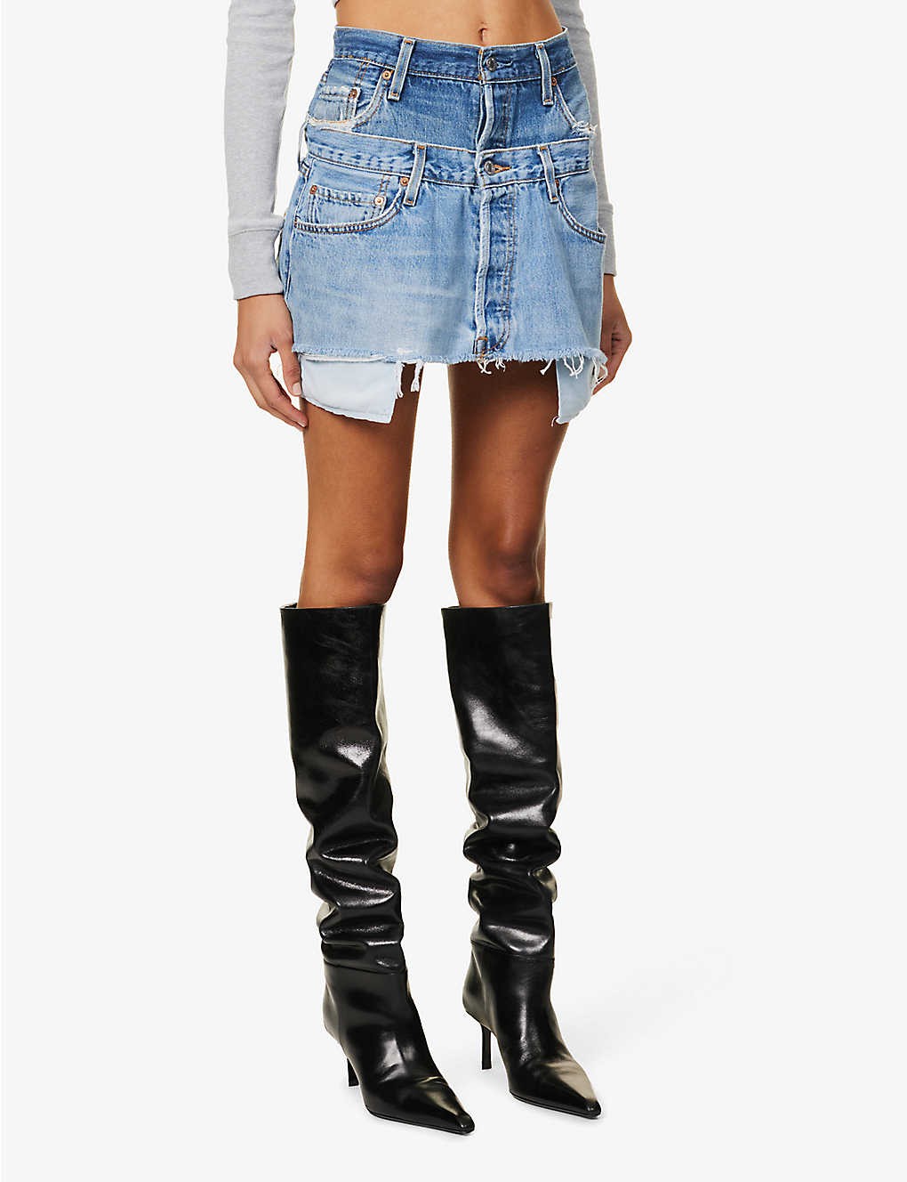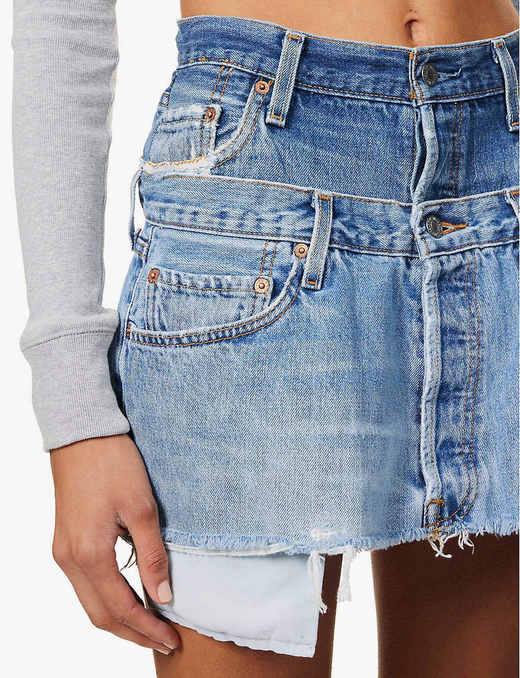 Reinvented Double upcycled-denim mini skirt