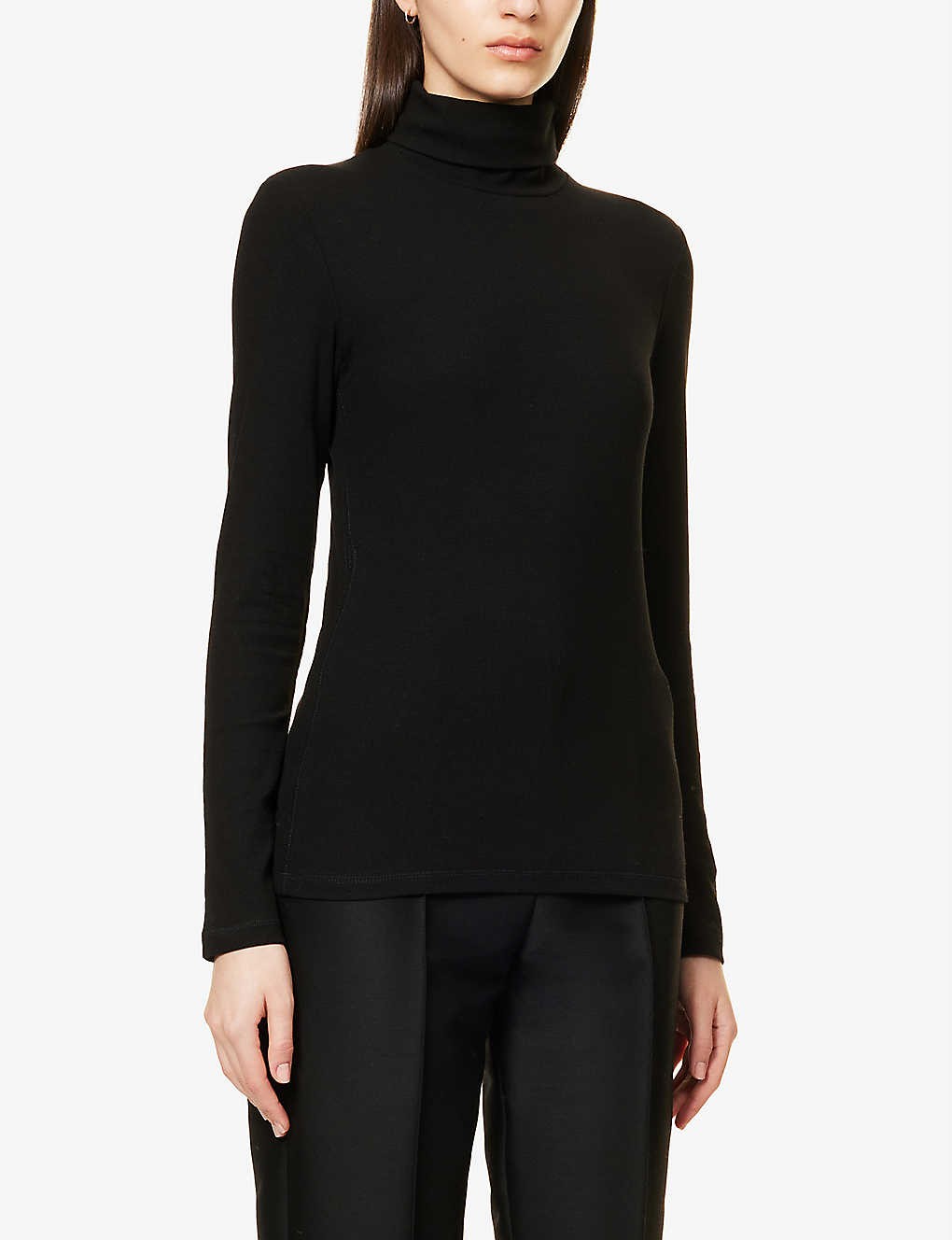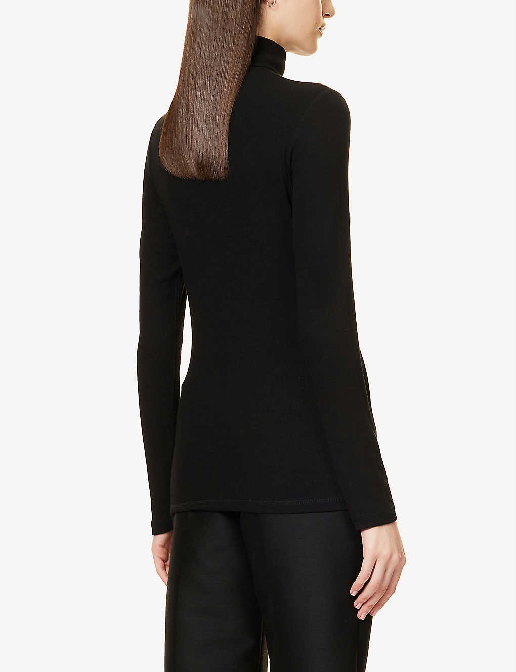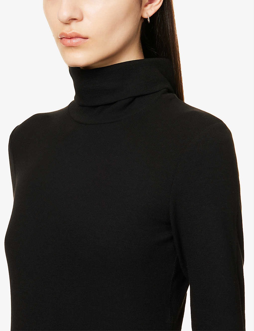 Ribbed turtleneck stretch-knit top