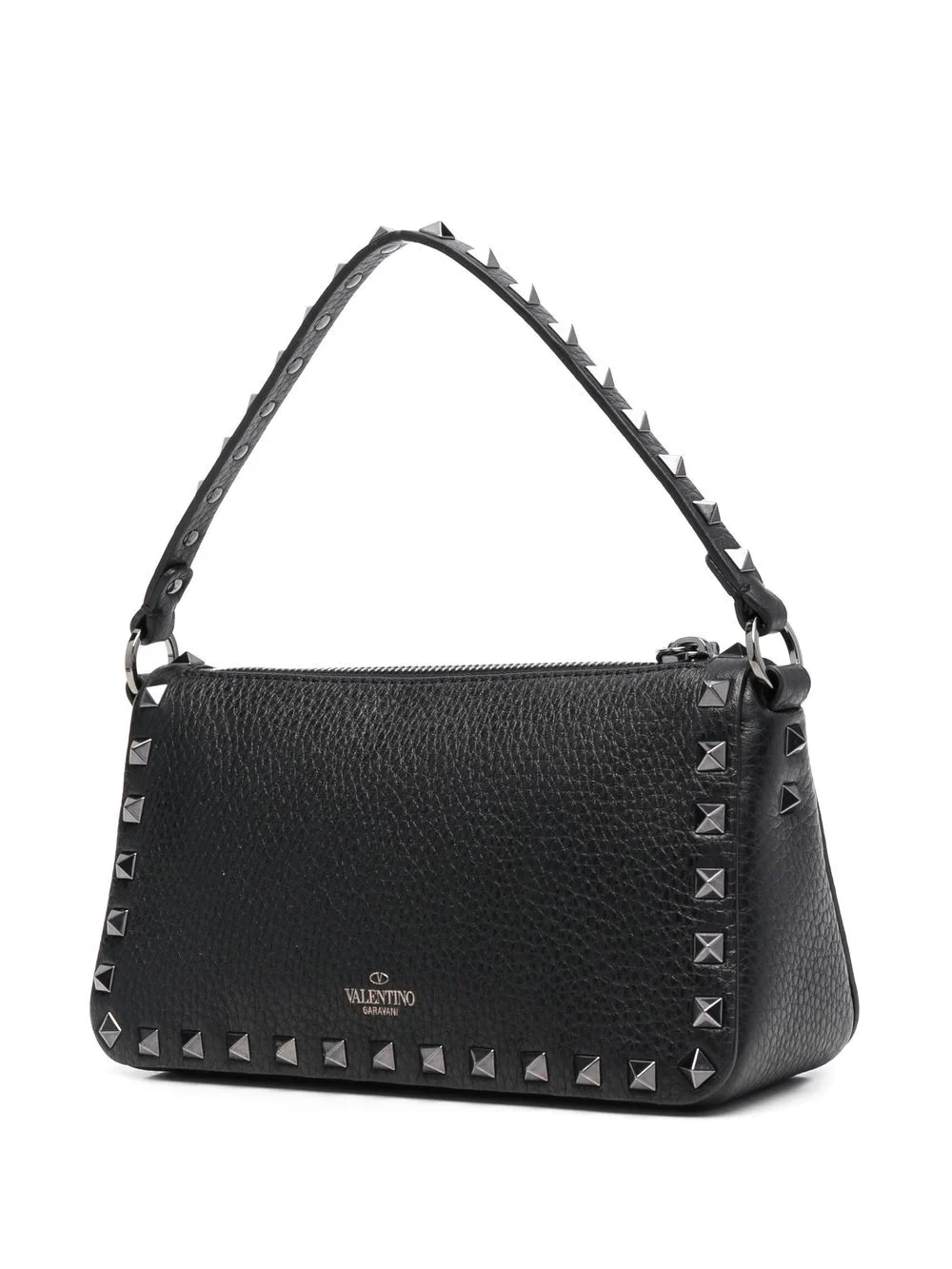 Rockstud leather crossbody bag from VALENTINO GARAVANI featuring black, leather, signature Rockstud embellishment, detachable shoulder strap, single rounded top handle and top zip fastening.
