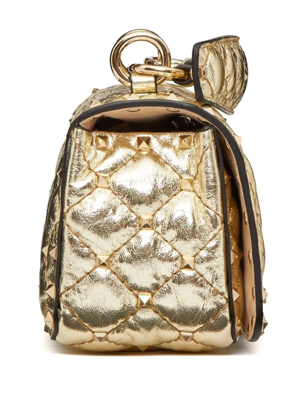 Valentino Garavani's Rockstud Spike bag is so-called thanks to the assemblage of signature pyramid-shaped studs adorning the rectangular silhouette. In a metallic gold hue, the recognisable hardware integrates amongst the diamond quilting.