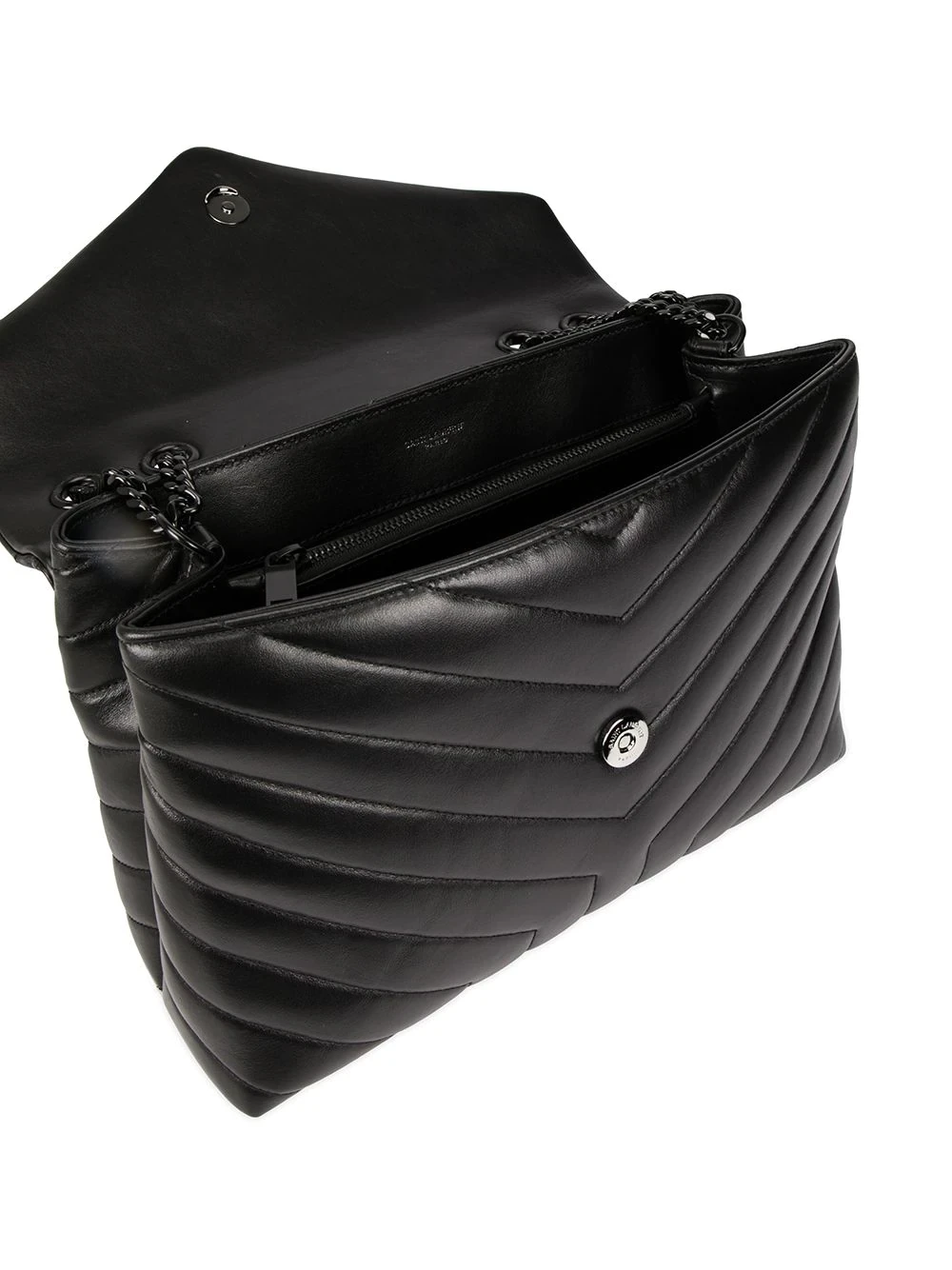 Meet your new best friend, Loulou. Complete with a quilted style and Saint Laurent's iconic logo plaque, she'll never embarrass you or let you down. BFFL. Featuring a quilted effect, a front logo plaque, a gunmetal-toned chain strap and a foldover top with magnetic closure.