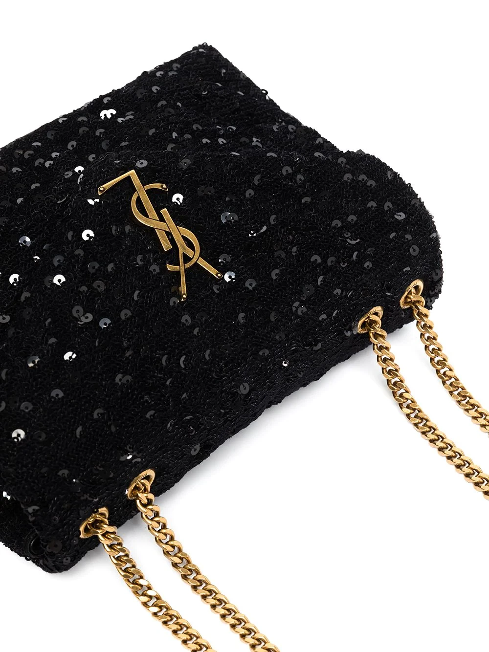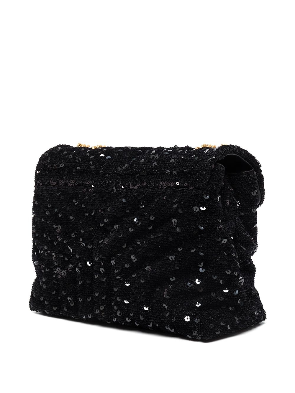 Saint Laurent's LouLou shoulder bag is updated with shimmering sequins all over the wool construction. Matching with the sliding chain-link shoulder strap, the brand's iconic YSL plaque decorates the fold-over flap.