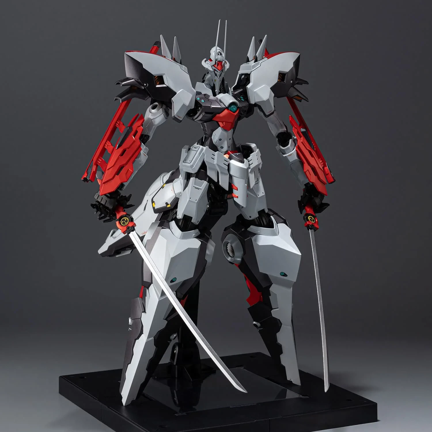 The two Plasma weapon units behind the shoulders can be extended as well as removed. The mechanical arms mounting the spare katanas has two different types of length
