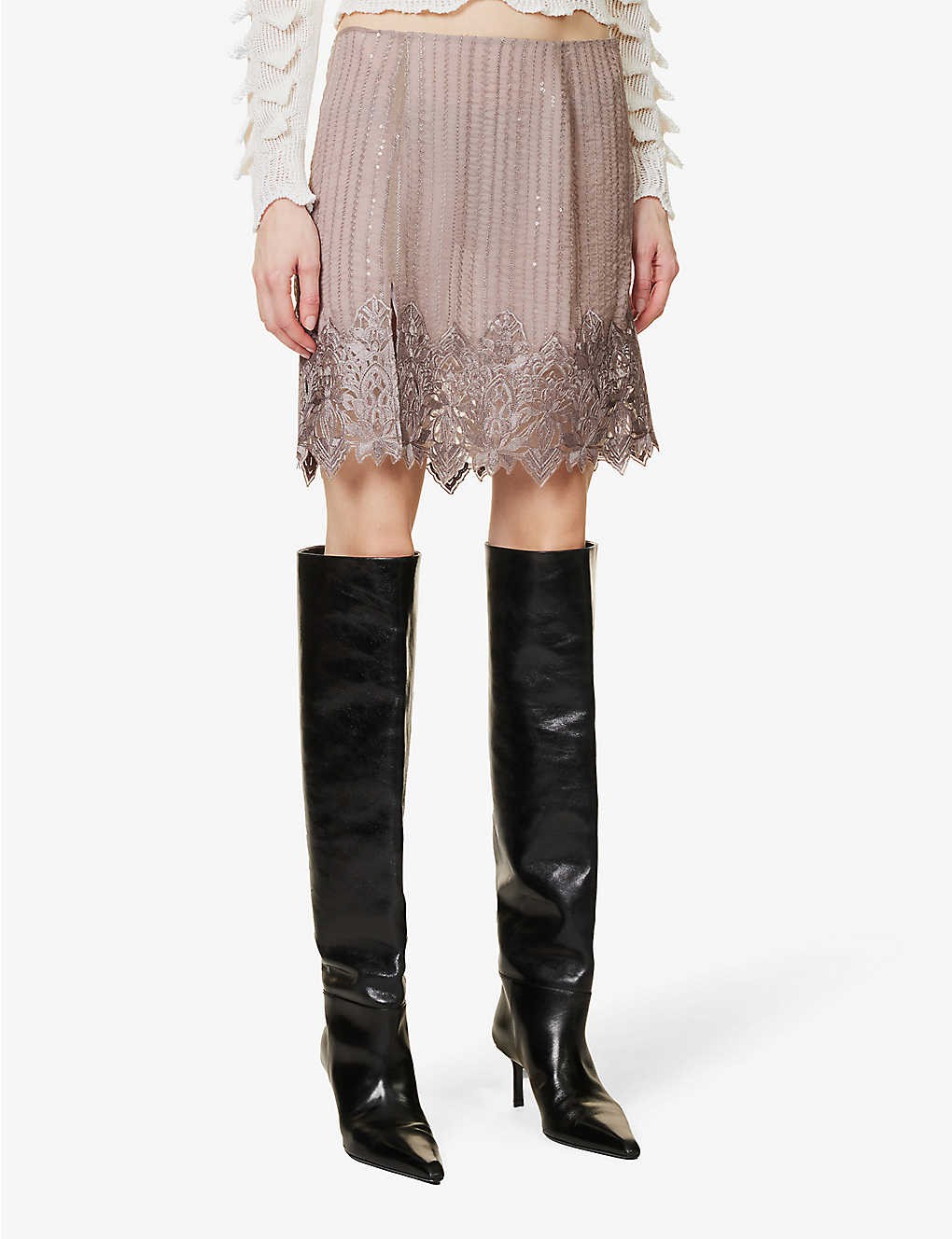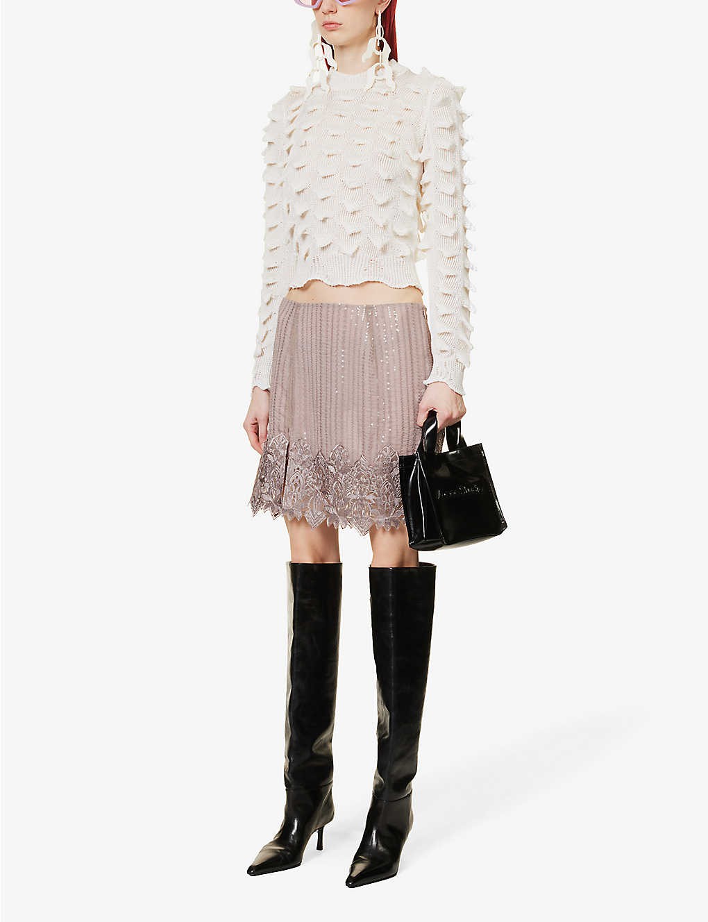 Sequin-embellished woven mini skirt