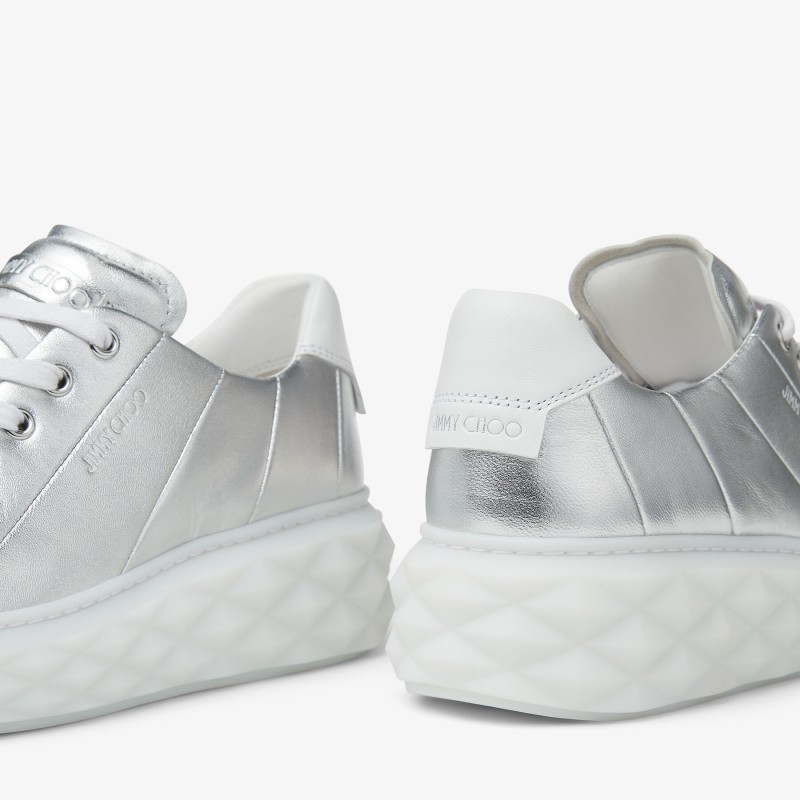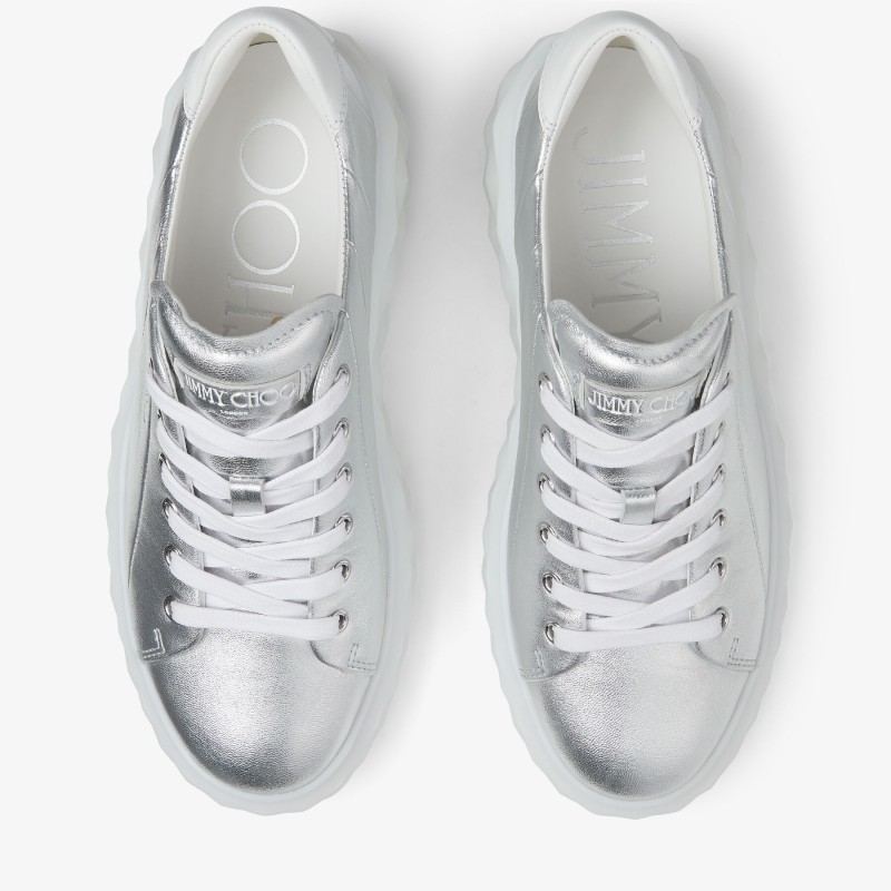 Silver Metallic Nappa Low-Top Trainers with Platform Sole