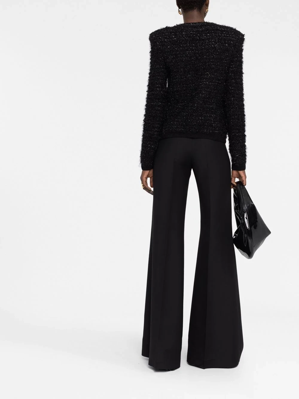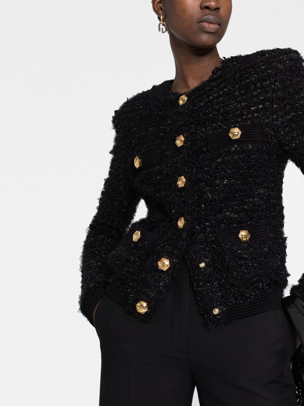 Balmain pairs a tweed construction with structured shoulder on this blazer. Key house details, this creates a tailored, contemporary finish for the piece.