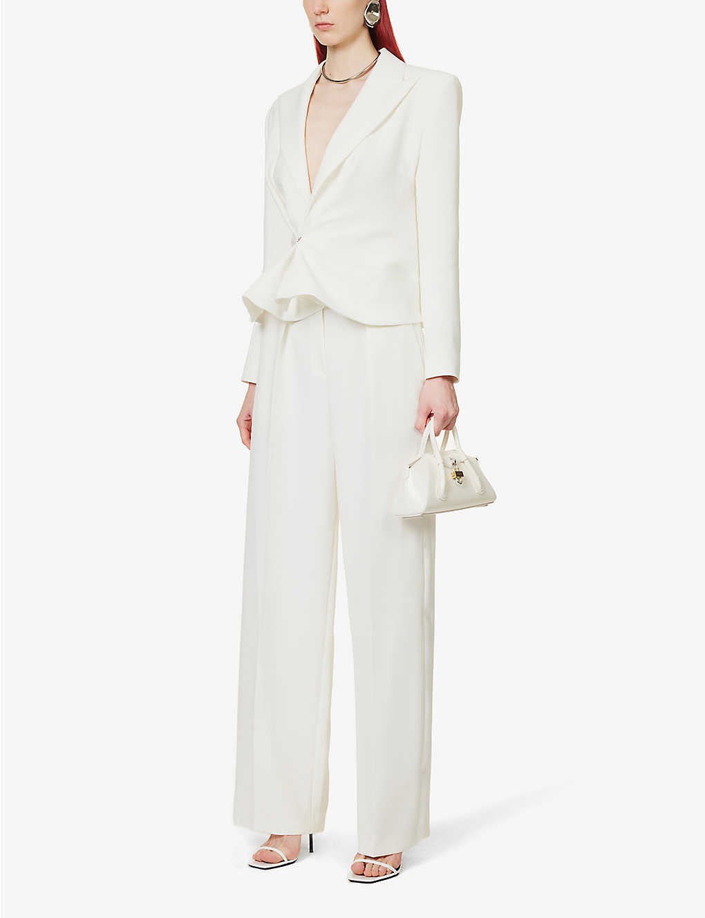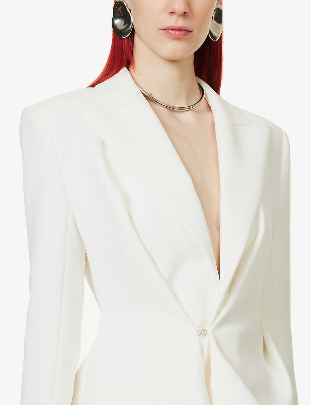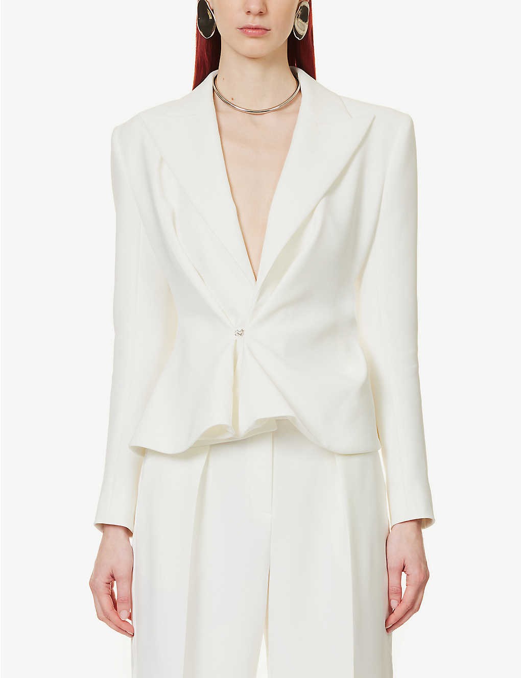 Slim-fit padded-shoulder stretch-woven blazer
