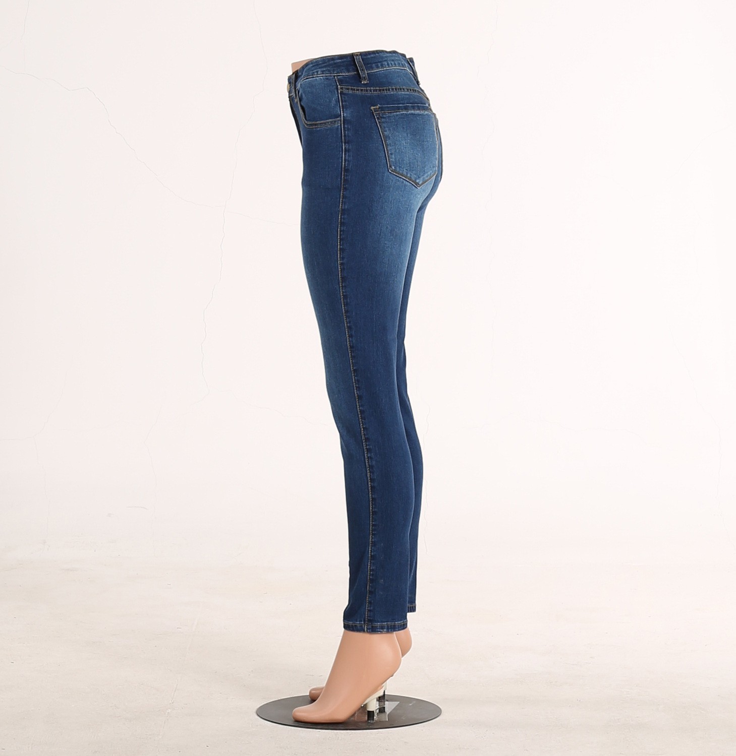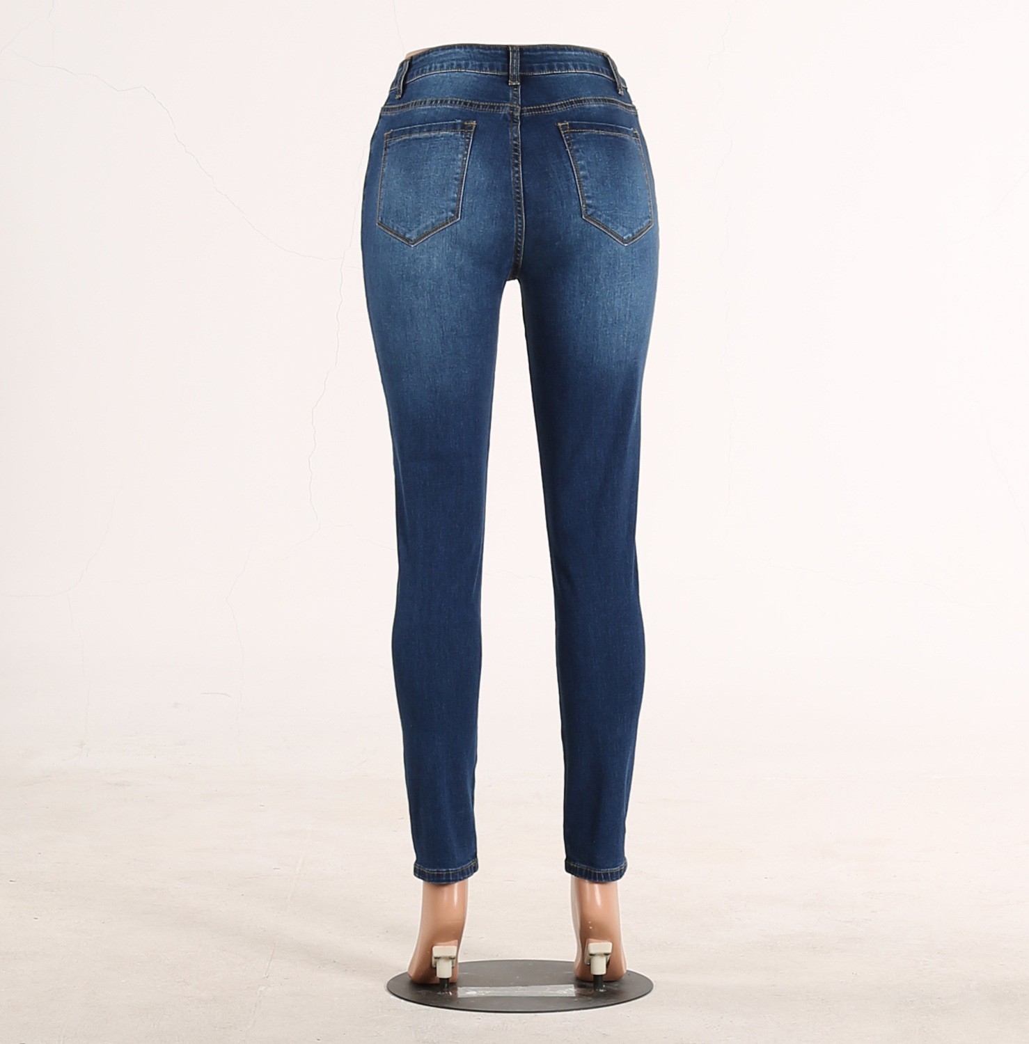Slim Solid Color Hip Lifting Elastic Slim Fashion Knee Hole Ladies Jeans