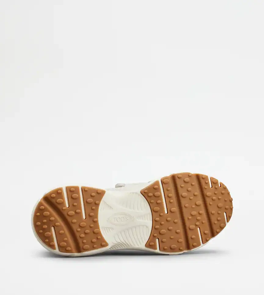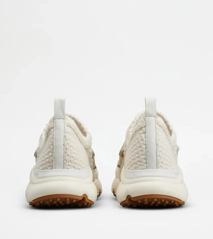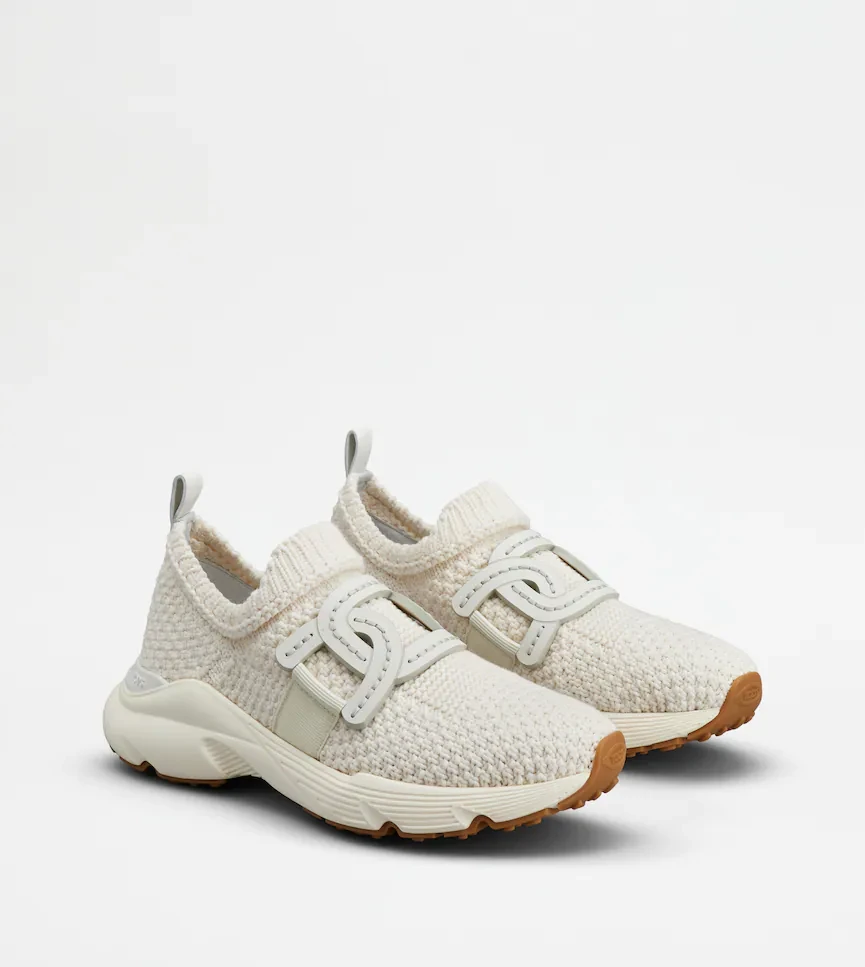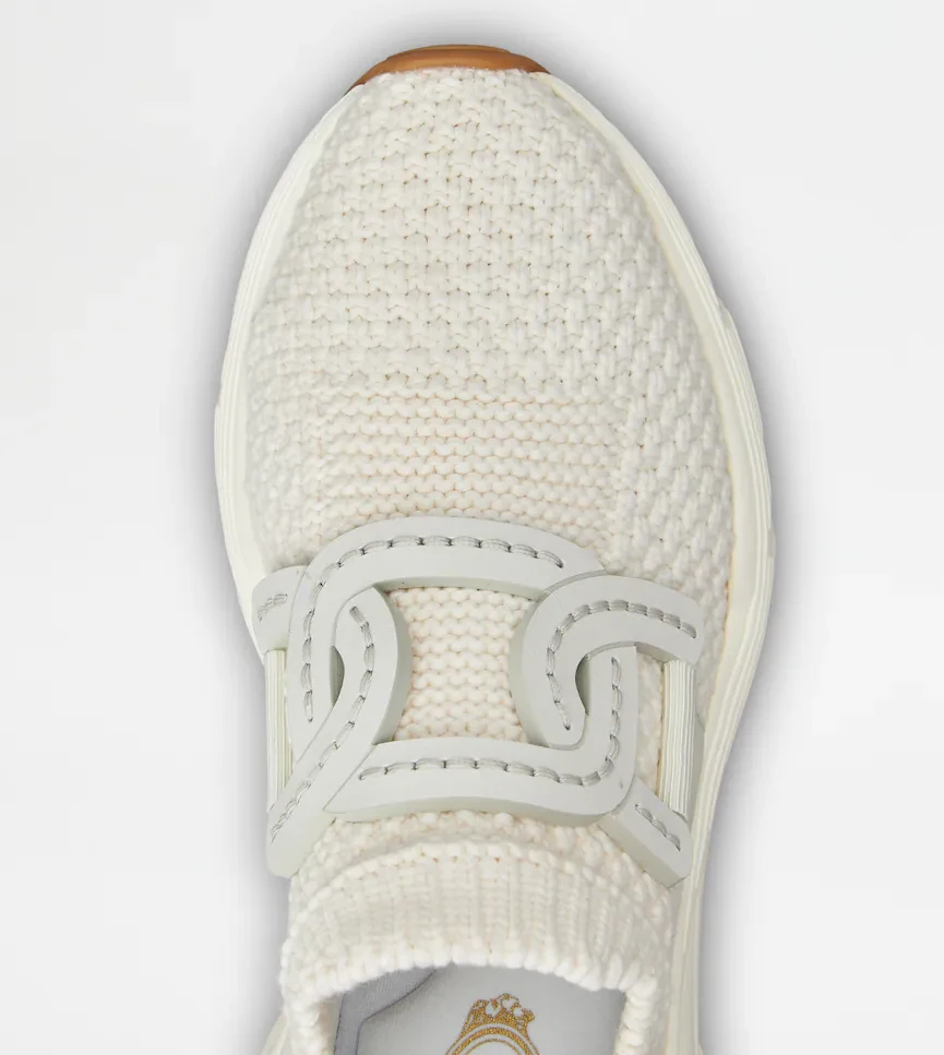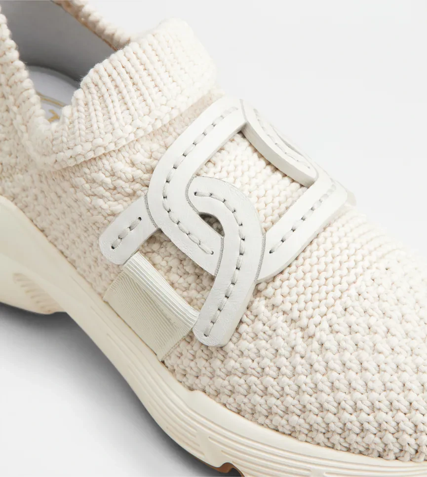 Slip-on sneakers in cotton stretch knit, with leather chain accessory and macro rubber outsole.