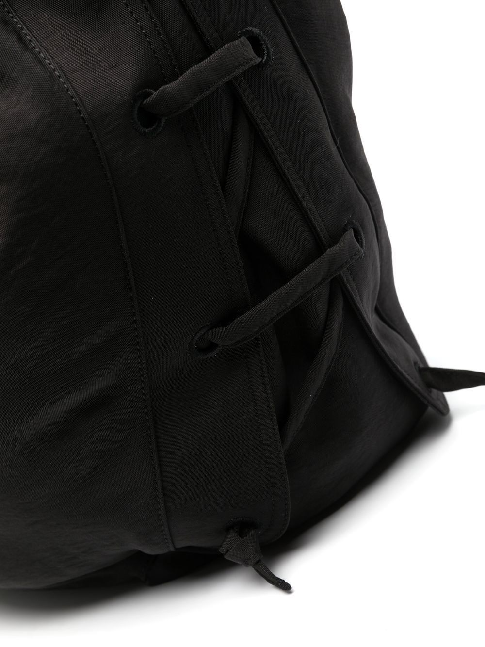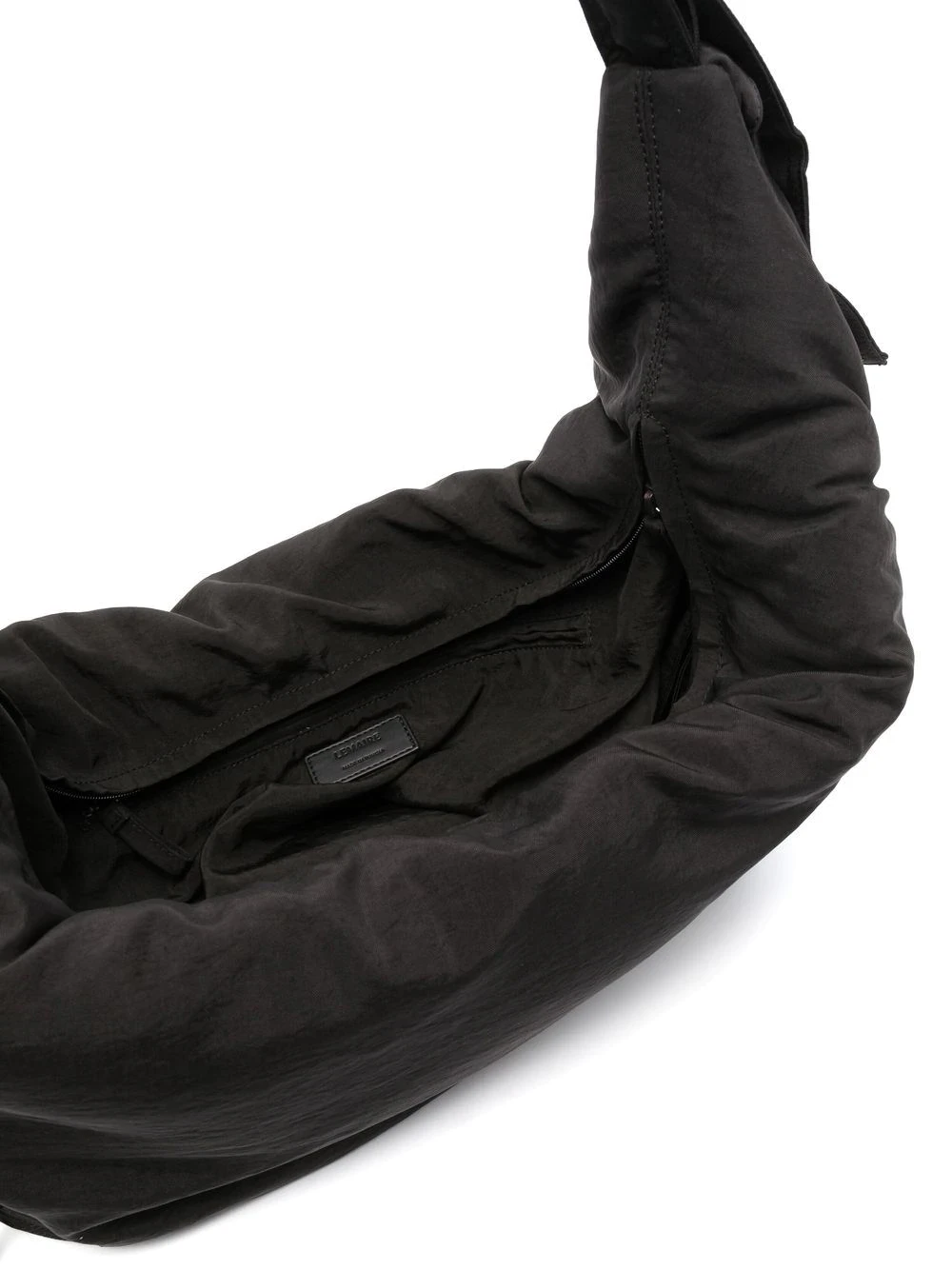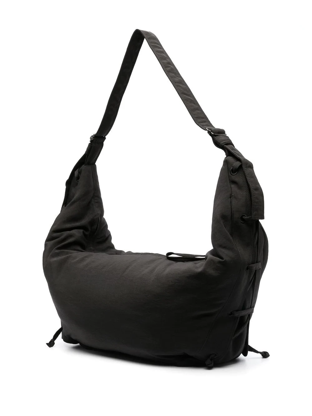 Inspired by Lemaire’s iconic Croissant bag, the Soft Game bag has a sturdy structure that holds its curved shape. Metal eyelets and laces close in the bottom, allowing its volume to be adjusted.