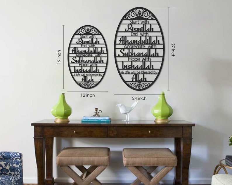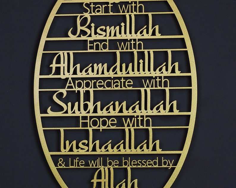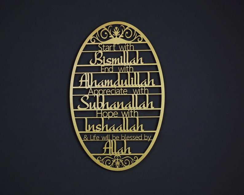 Essential details Type: Other Home Decor Design Style: Modern Place of Origin: Guangdong, China Brand Name: Shengrui Model Number: 213123 Material: Carbon Steel Product name: Islamic Wall Decor Color: Customized Colors Size: Customized Sizes Technics: Laser Cut Sample time: 5-7days Sample: Availble MOQ: 30Pcs Packing: Carton Style: Islamic Art Design: Modern Room Space Selection: Not Support Occasion Selection: Not Support Holiday Selection: Not Support