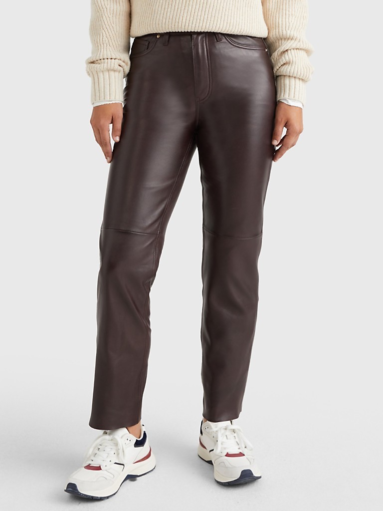 Tommy Hilfiger women's pant. Styled from luxurious lambskin leather, these trousers are as comfortable as they are chic. Cut in flattering slim fit with a straight leg.