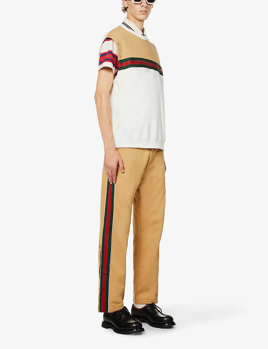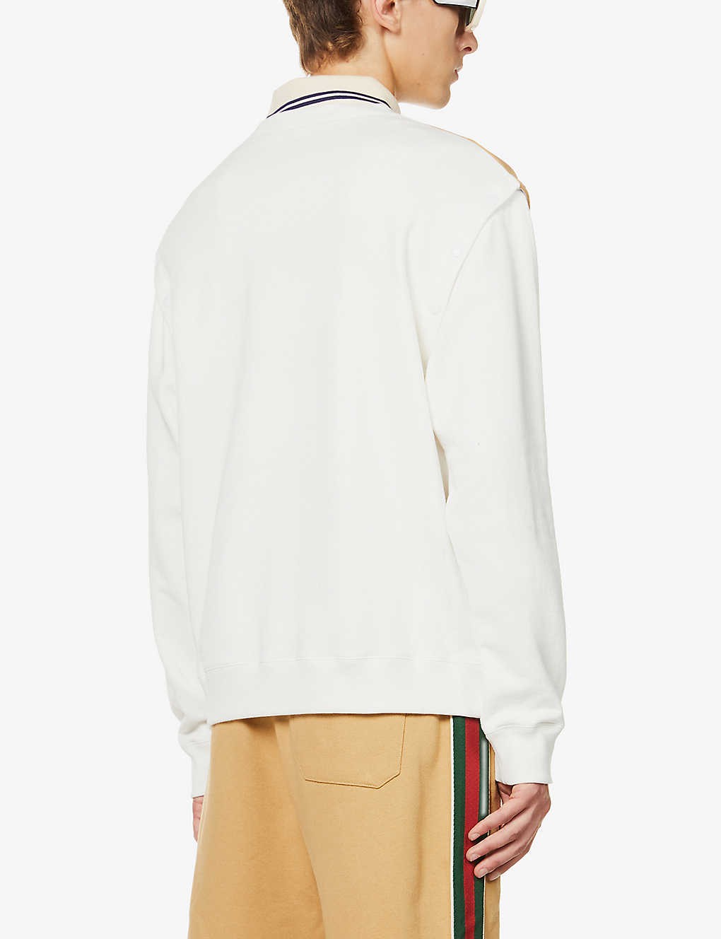 Striped-panel relaxed-fit cotton-jersey sweatshirt