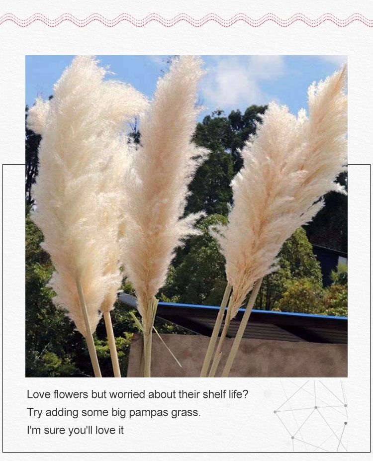 Essential details Place of Origin: Yunnan, China Brand Name: Sumflora Model Number: SFPAMPAS02 Occasion: Back to School, Chinese New Year, Christmas, Earth Day, Easter, Father's Day, Graduation, Halloween, Mother's Day, New Year, Thanksgiving, Valentine's Day, Other Size: plume length30-80cm, and over 80cm. Material: natural pampas grass, natural pampas grass Product Name: Natural Beige large pampas grass Plume Length: 30-50cm,50-60cm,60-70cm,70-80cm, and over 80cm. Color: Beige Keywords: Dried Pampas Grass Occassion: Wedding Christmas Home Decor Feature: Long Lasting Product Type: Large Pampass Grass Usage: Home Decoration Packing: Opp Bag