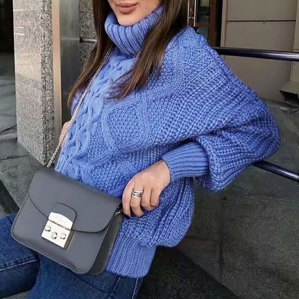Sweater Women Vintage Knitted Pullover Winter Neck Female Clothing