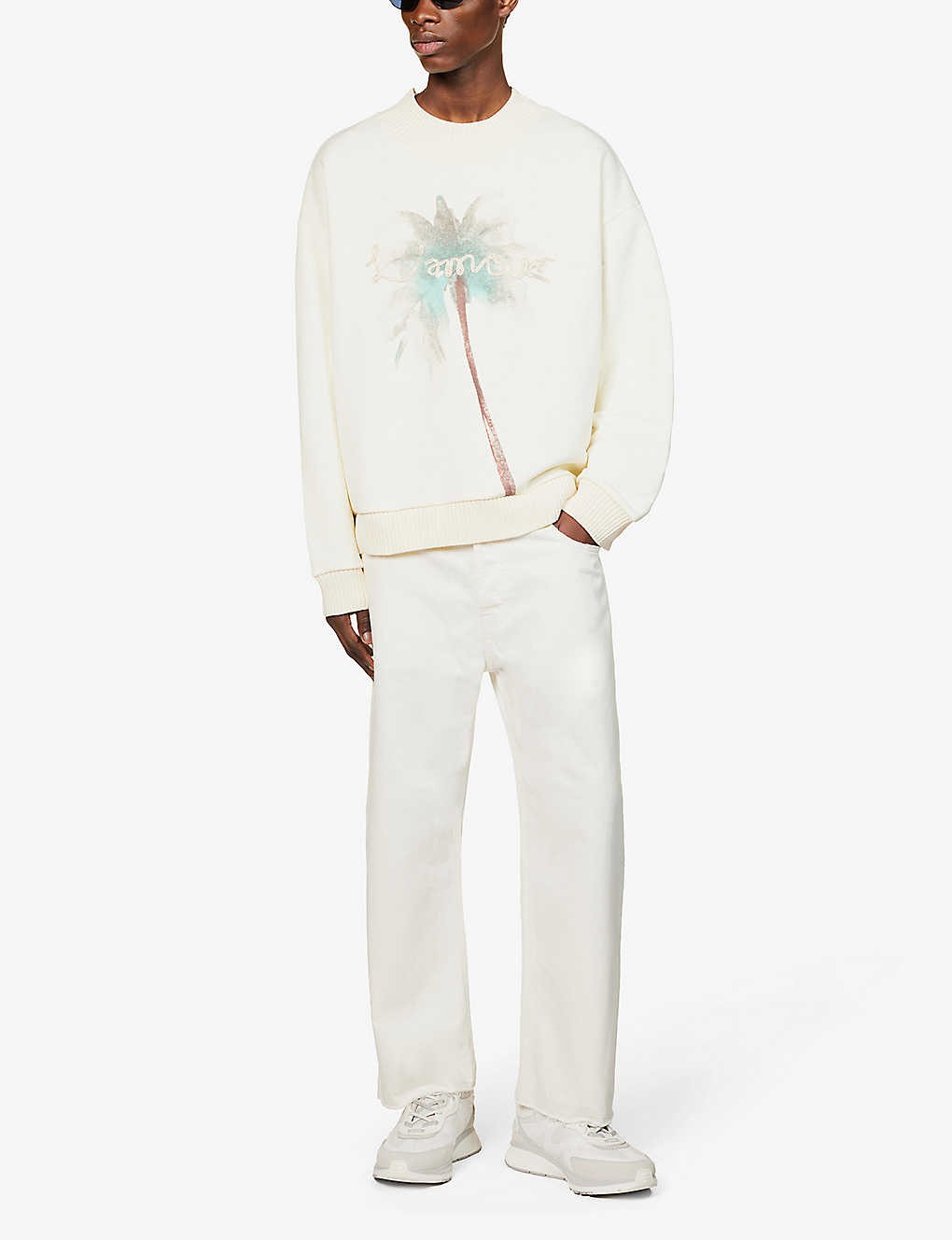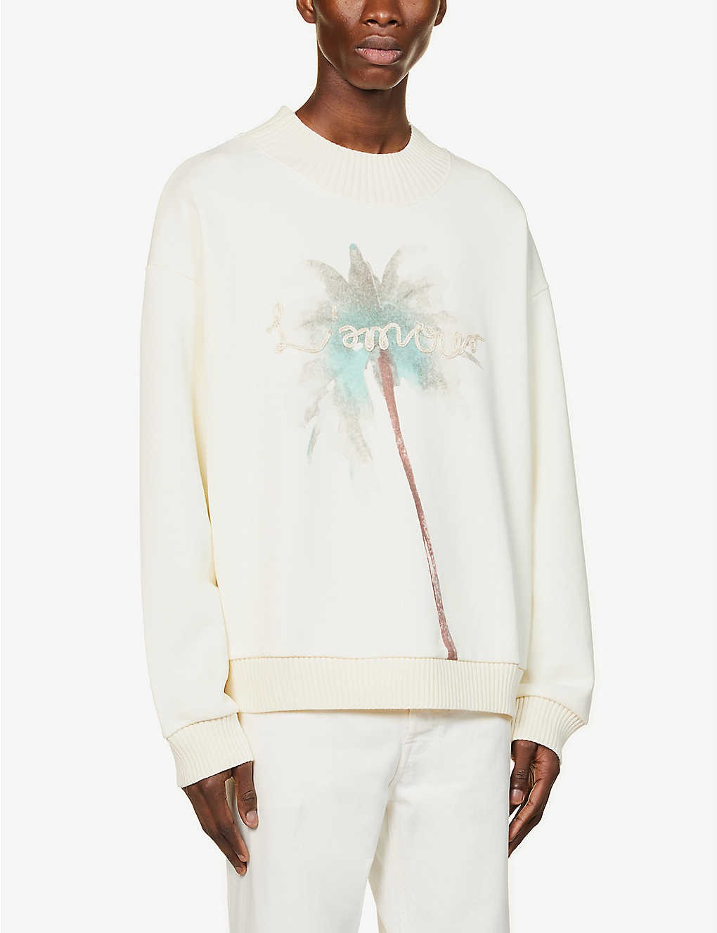 Regular-fit, crewneck, dropped shoulders, long sleeves, embroidered text at front, graphic print at front, ribbed trims