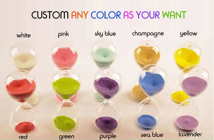 Essential details Design Style: Rustic, Art Decor, CLASSIC Place of Origin: Shaanxi, China Brand Name: OEM/ODM Model Number: fw Product Name: Timer 5 Minutes Hourglass Material: borosilicate Glass Color: Grey,Green,Yellow,Blue, green... Usage: Home Decoration,Bar,Restaurant Size: 3.7*12cm,4.7*15cm,5.8*18cm,7.5*24cm MOQ: 1000pcs Sample: Offered Feature: simple Brand: Freeway Commercial Buyer: Restaurants, Super Markets, Hotels, Gifts Stores Season: All-Season Room Space Selection: Support Room Space: Desktop, Kitchen, Closet Occasion Selection: Support Occasion: Presents, Wedding Holiday Selection: Support Holiday: Christmas, New Year's, Easter Day, Thanksgiving