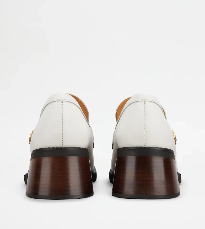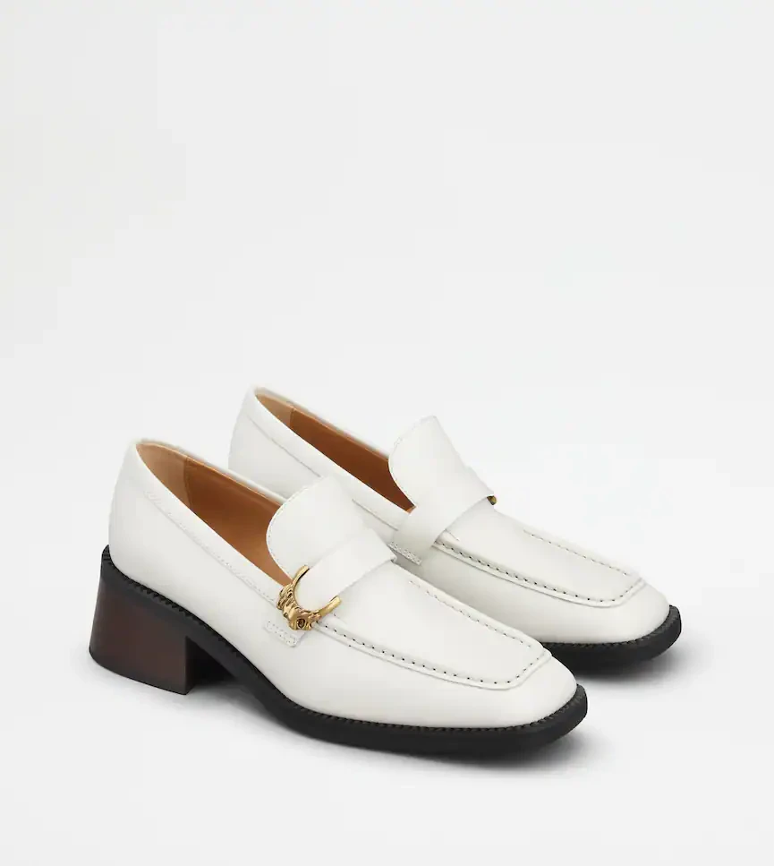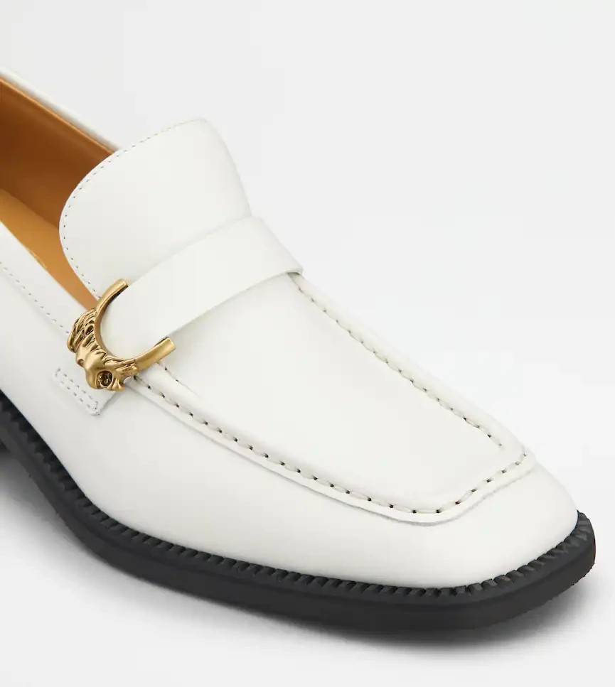 Loafers in smooth leather with essential line, block leather heel and rubber outsole. Featuring an elegant strap with metal lion buckle, they add a refined iconic touch to your contemporary look.
