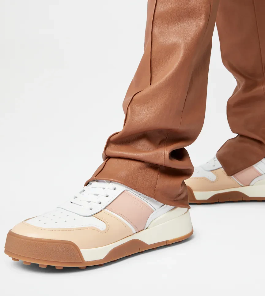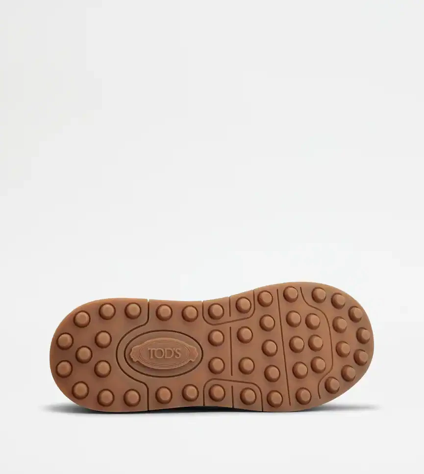 Tod's sneaker selection is enhanced by a new style that recalls the iconic rubber pebble theme. Crafted in fine leather, these sneakers feature Tod's logo stamped on the side.