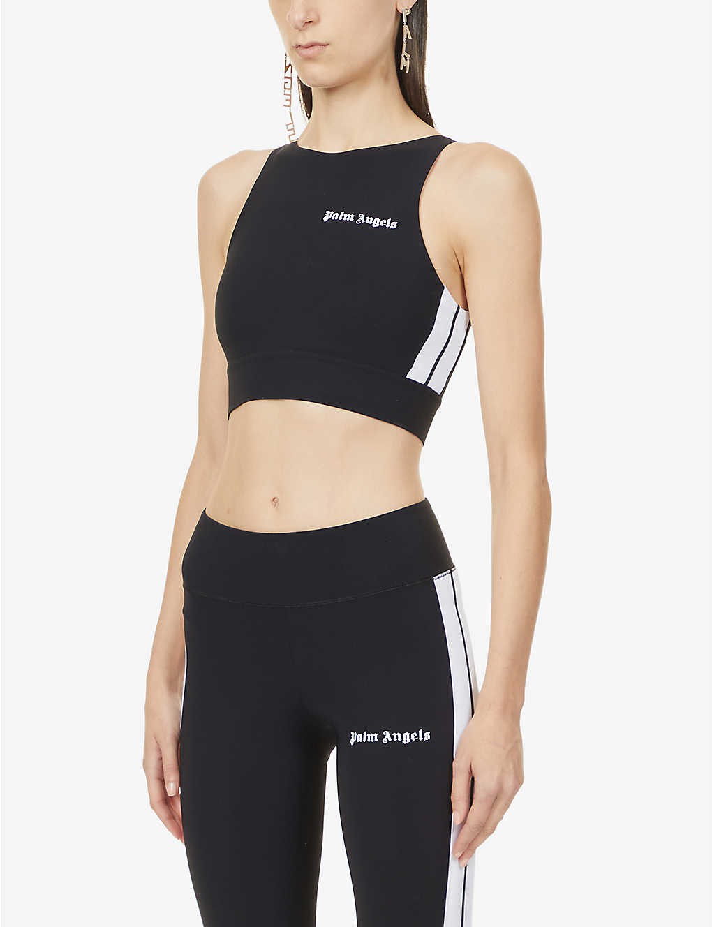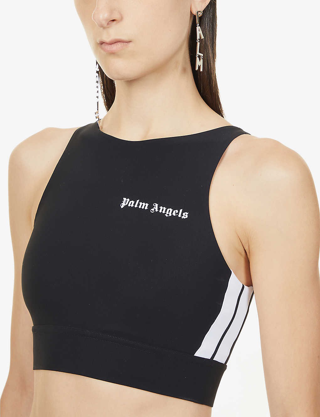 Track logo-print cropped stretch-woven top