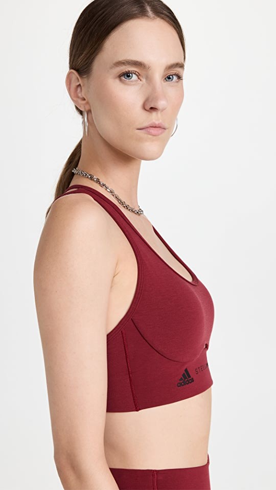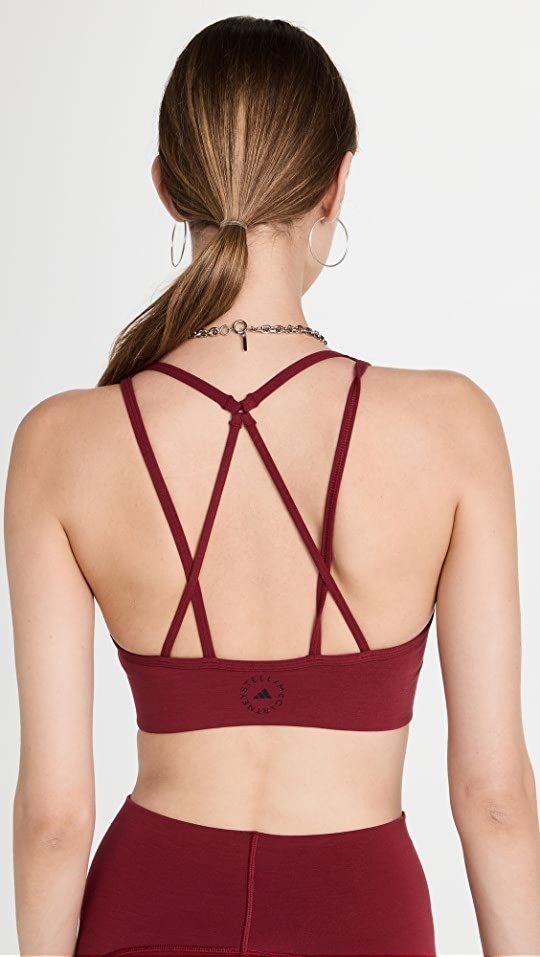 Sleek and supportive, this run-ready adidas by Stella McCartney bra top is distinguished by a strappy back, a slim front cutout, and classic branding.