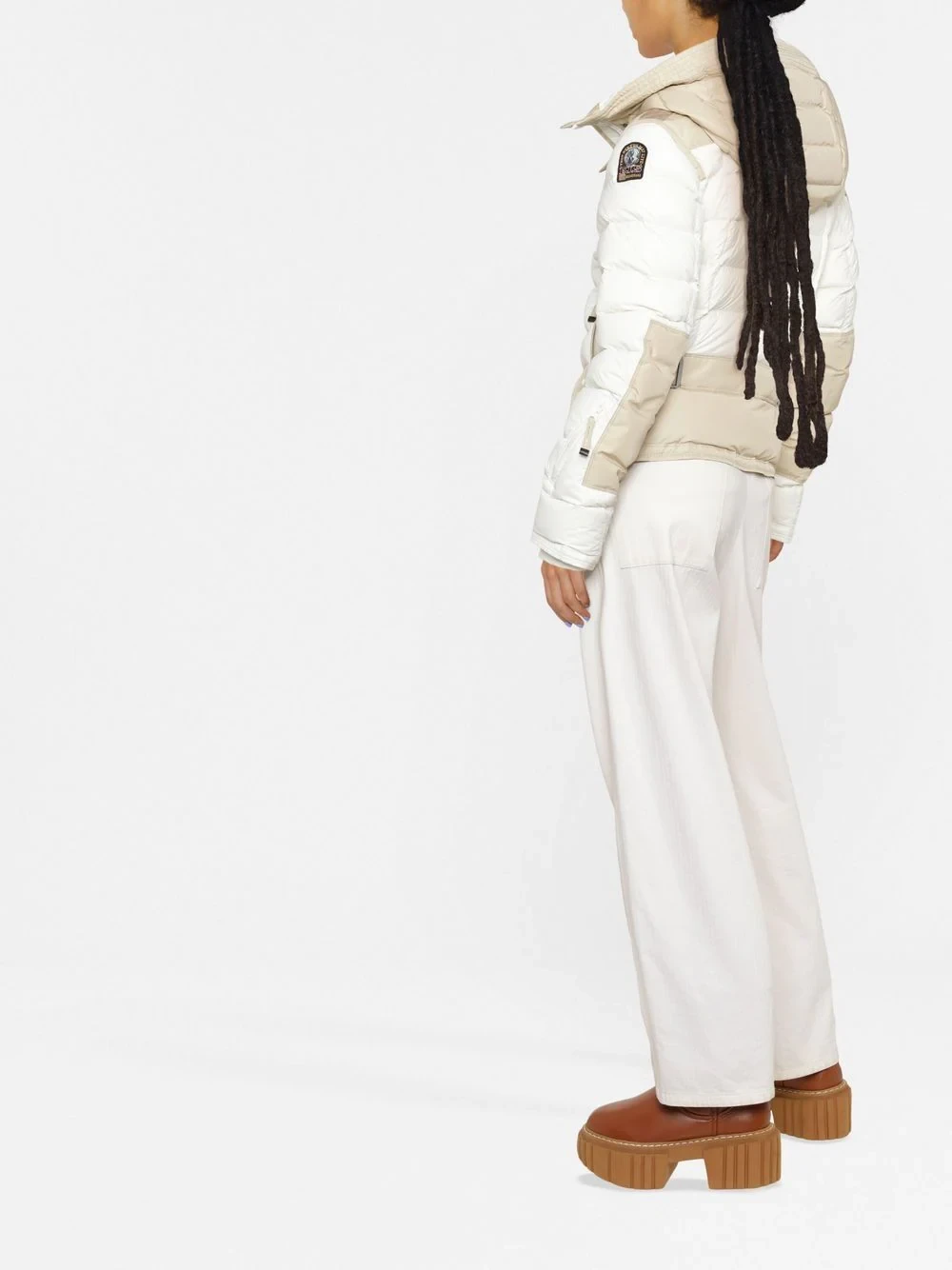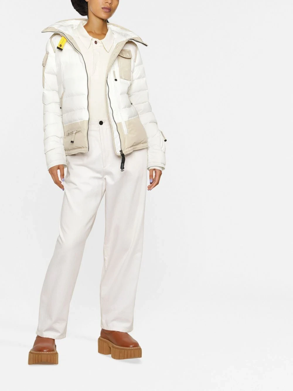 Experts in designing appealing outerwear, Italian brand Parajumpers elevates this practical puffer jacket with a two-tone design. Adding to a subtle look, the garment arrives in an off-white and beige colourway.