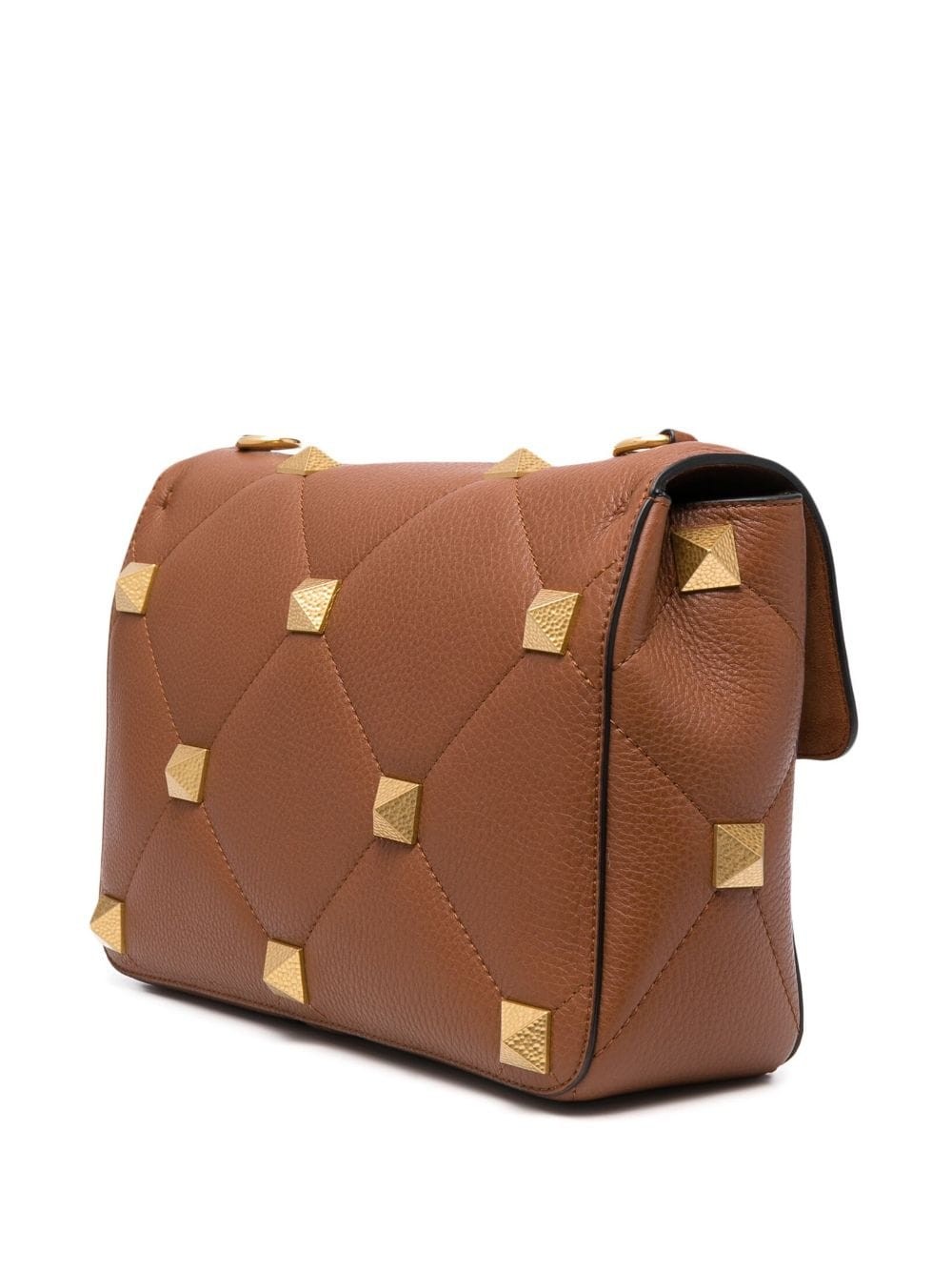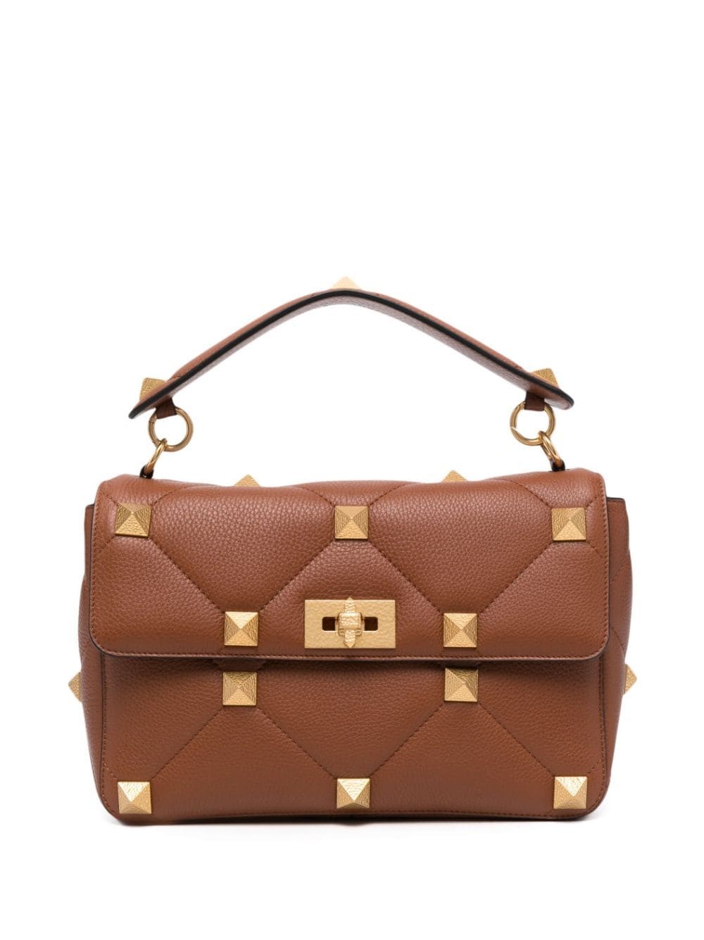 Adorned with Valentino Garavani’s signature Roman Stud detailing, this quilted tote bag comes in a cinnamon brown shade, contrasting with the gold-tone embellishments. Crafted from leather with a pebbled texture, the detachable shoulder strap allows it to be used crossbody.