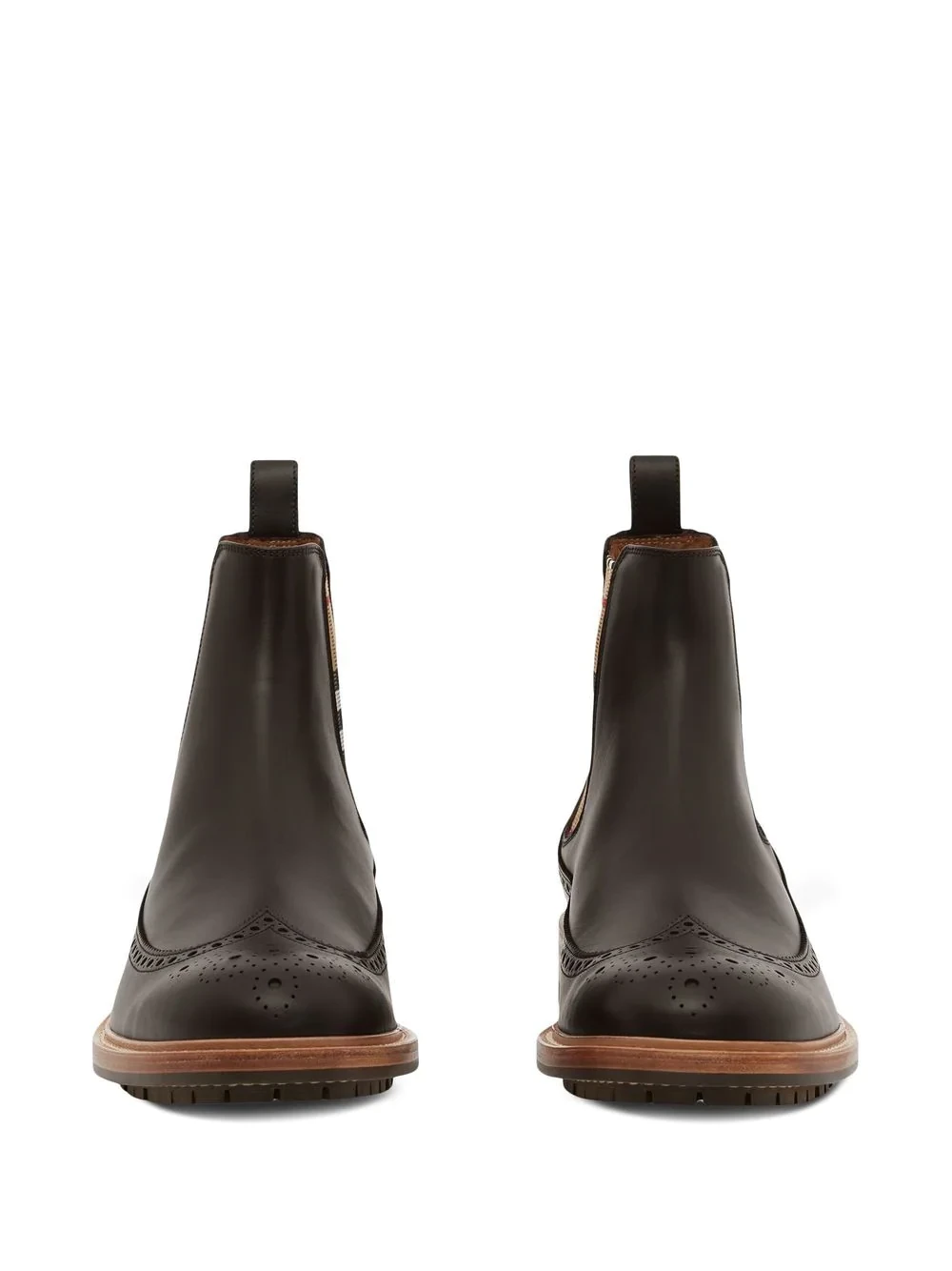 Burberry's ankle boots feature the brand's signature Vintage Checks at the elasticated side panels. The classic pattern pops against the dark brown leather construction.