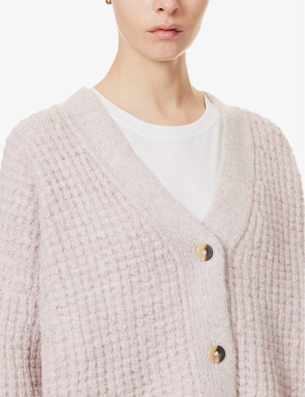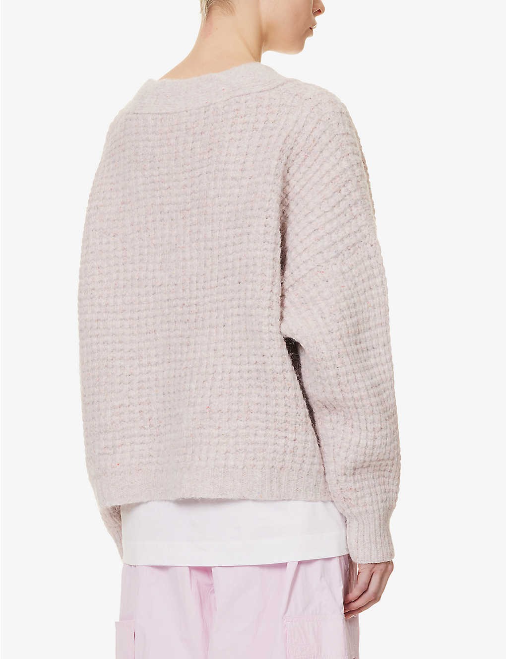Waffle-knit relaxed-fit alpaca wool-blend knitted cardigan