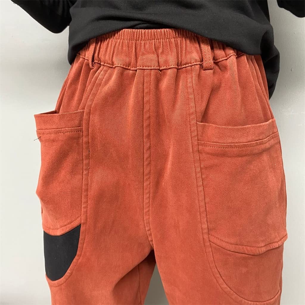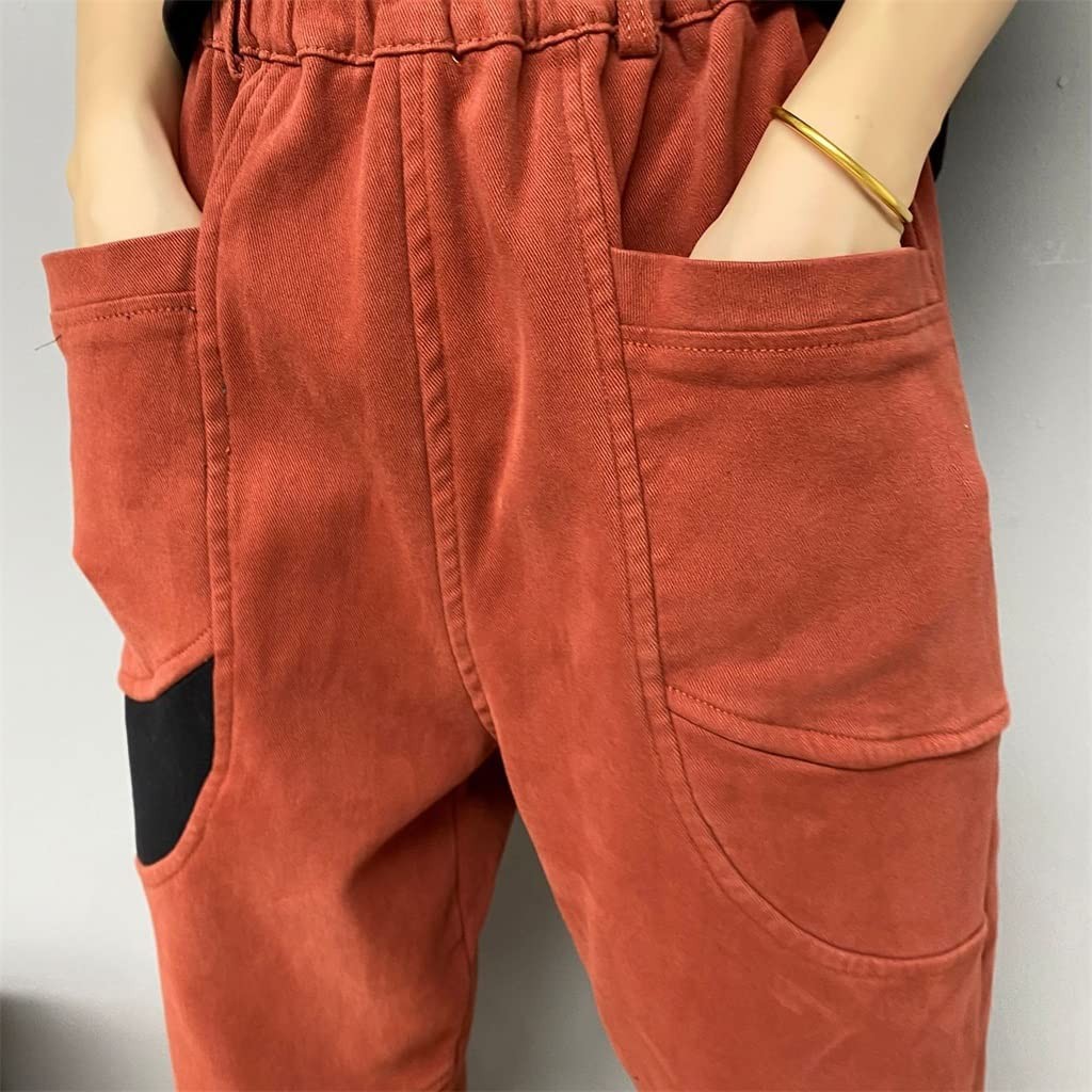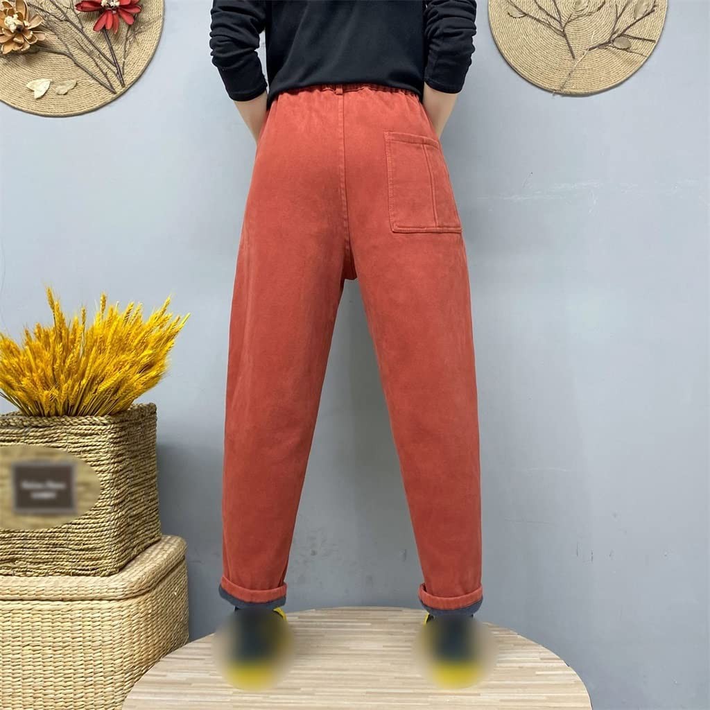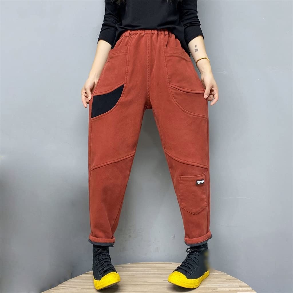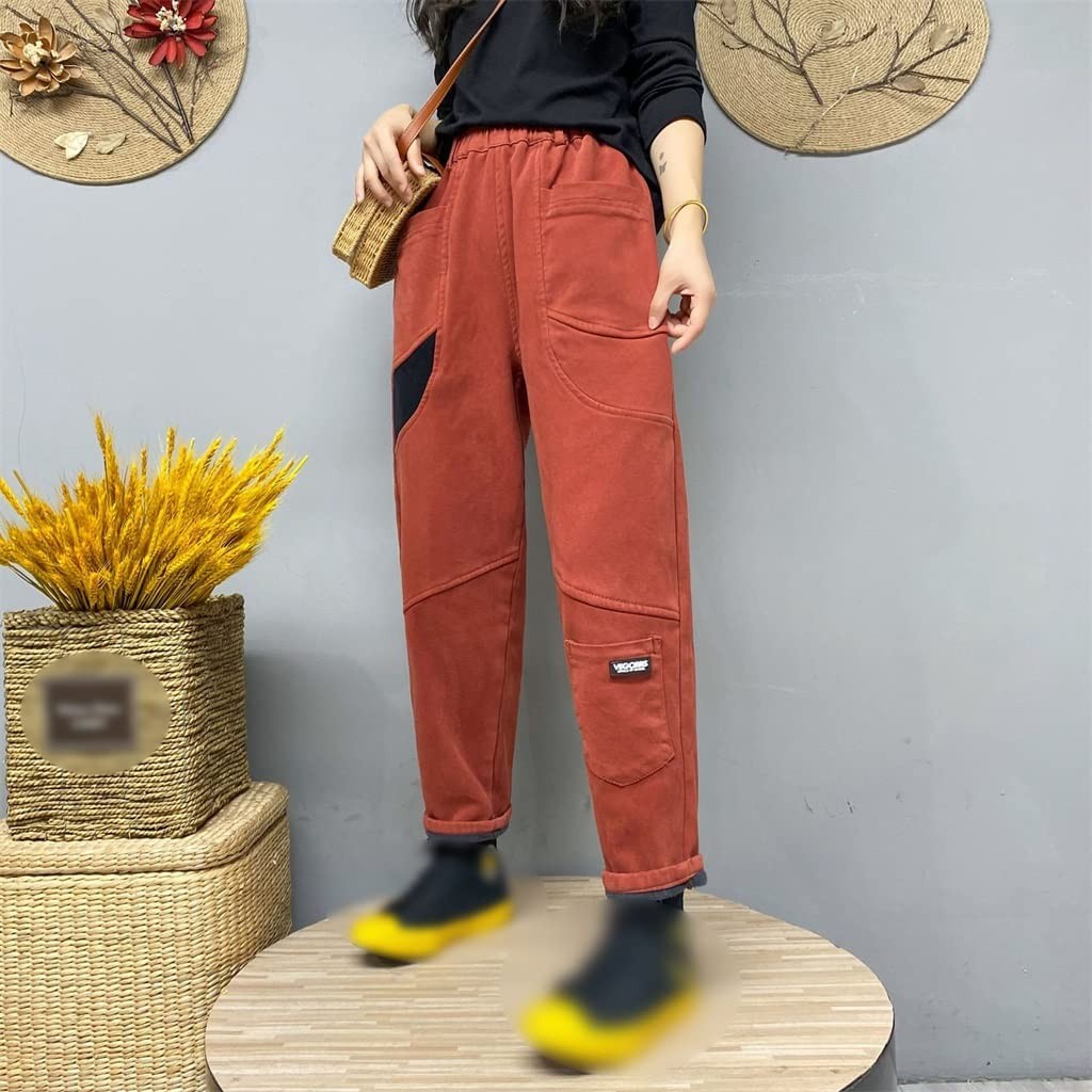 Autumn and winter women's jeans, high waist retro paneled fleece padded harem pants, casual denim trousers.