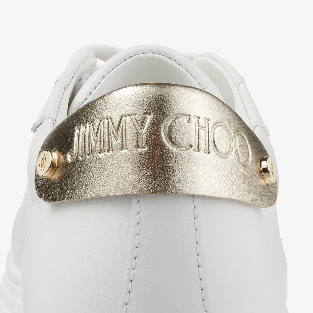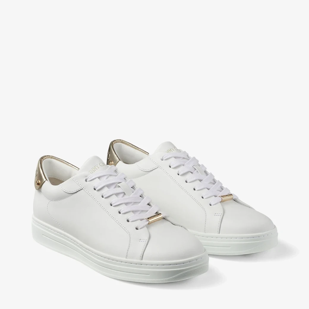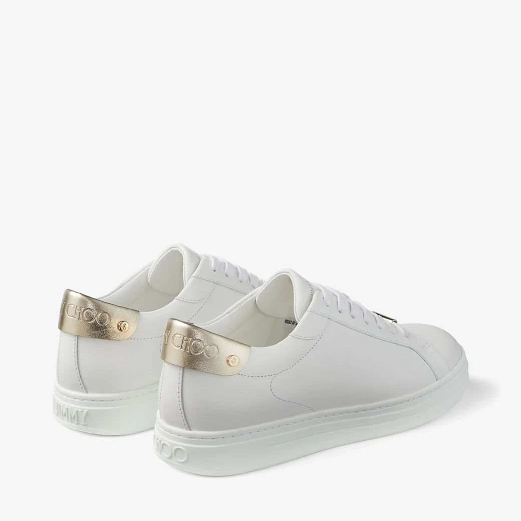 White Calf Leather and Champagne Metallic Nappa Low Top Trainers