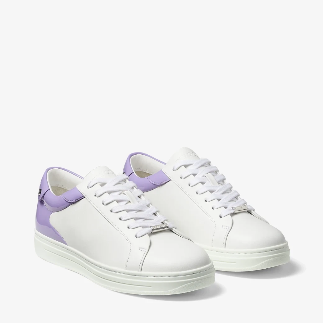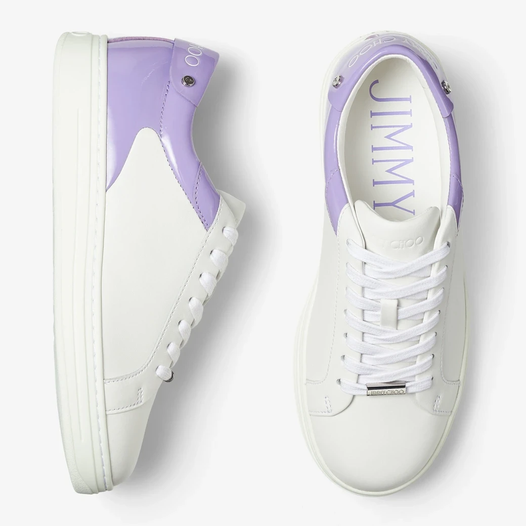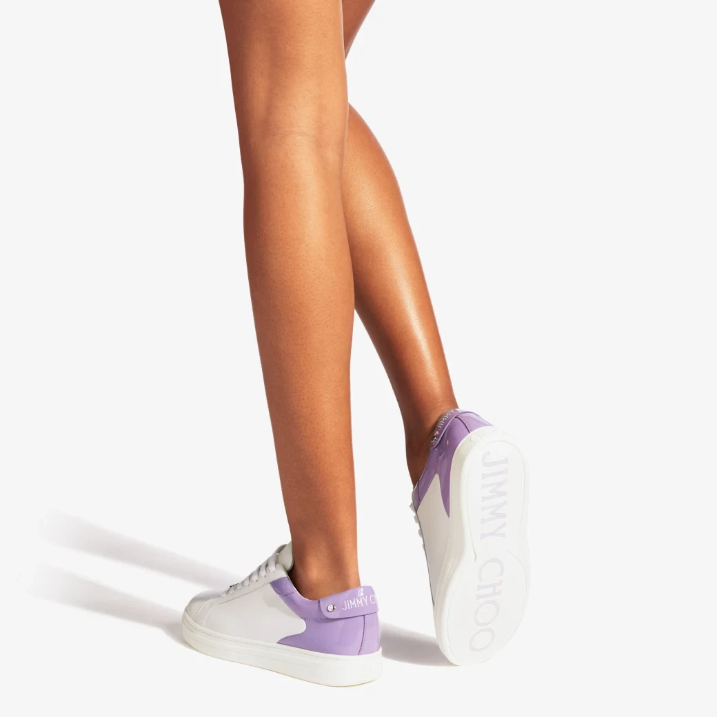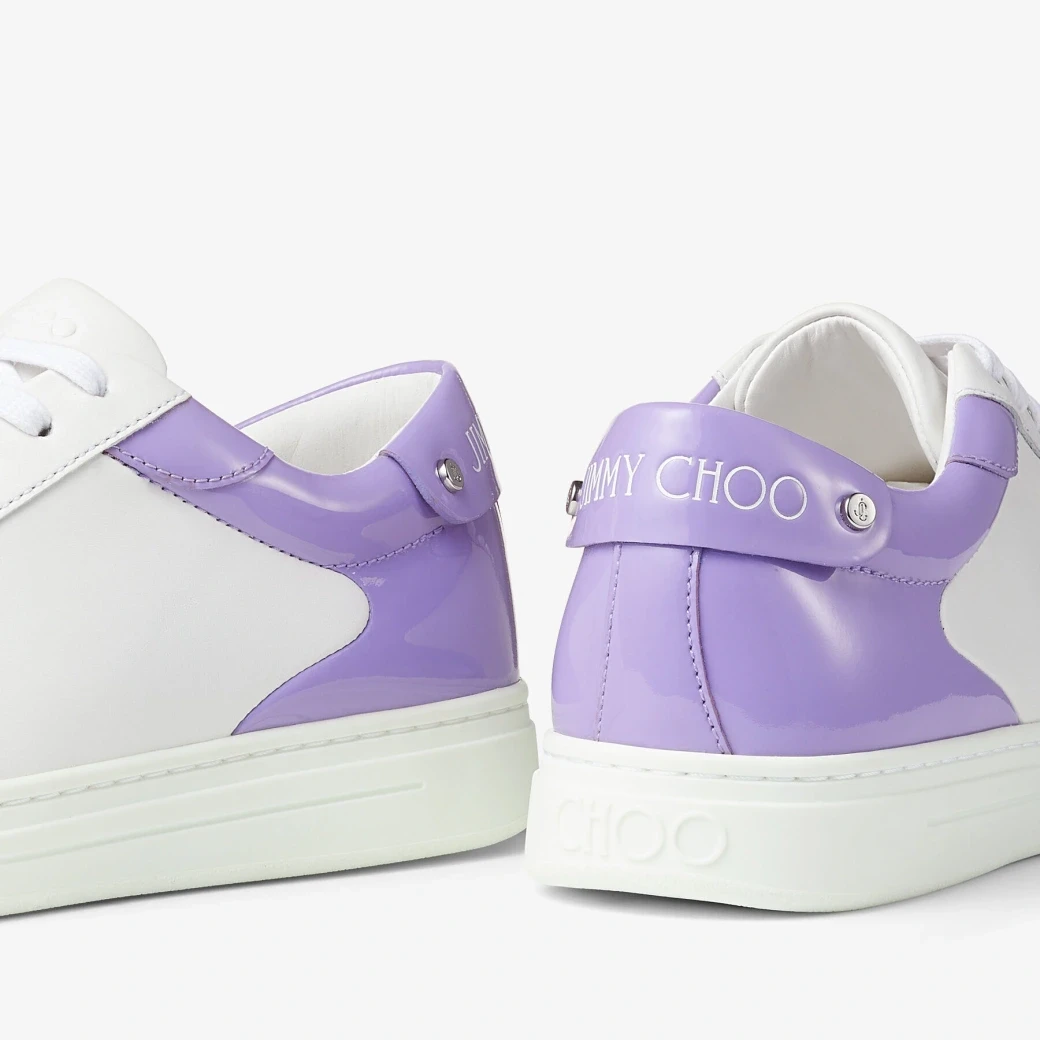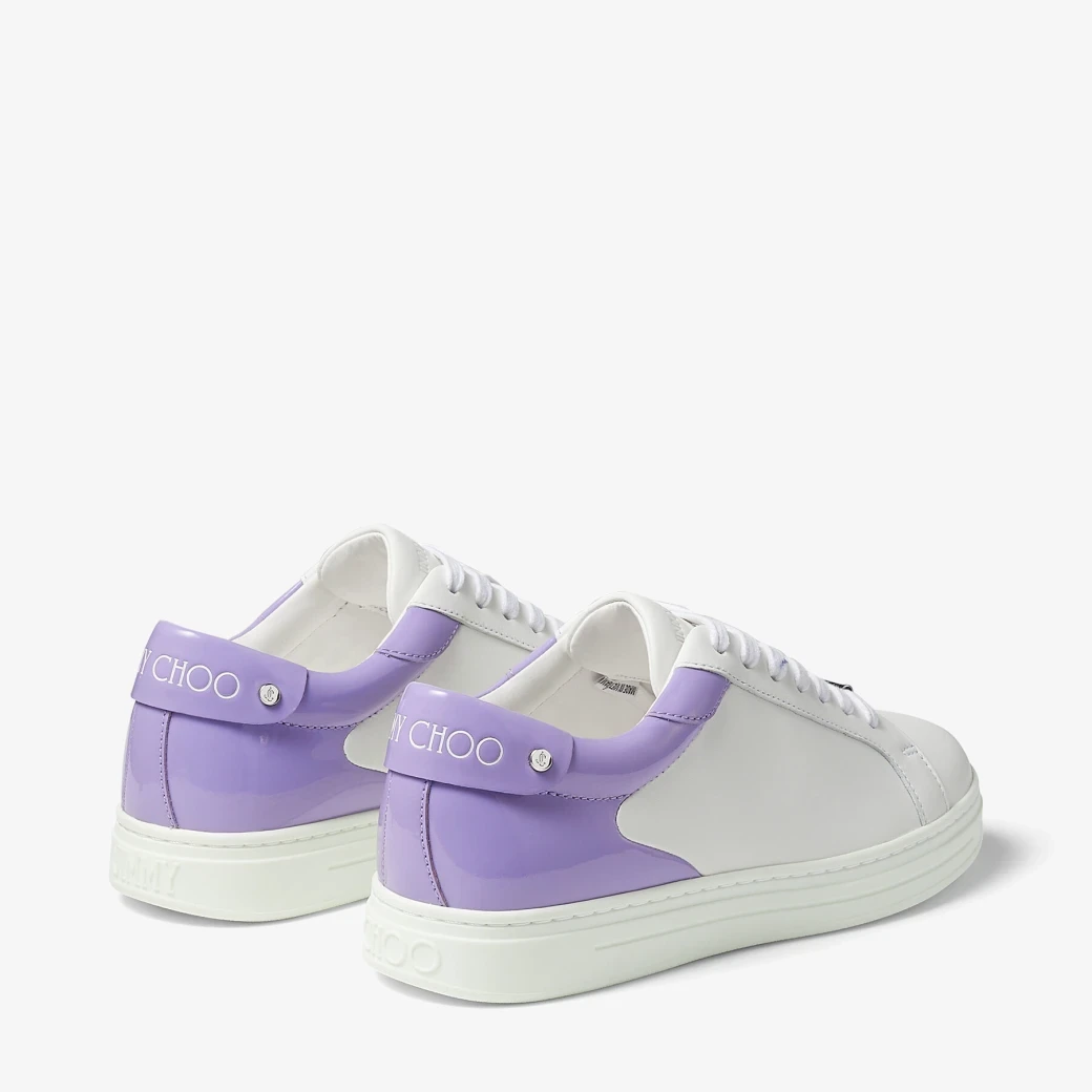 White Calf Leather and Wisteria Patent Low Top Trainers