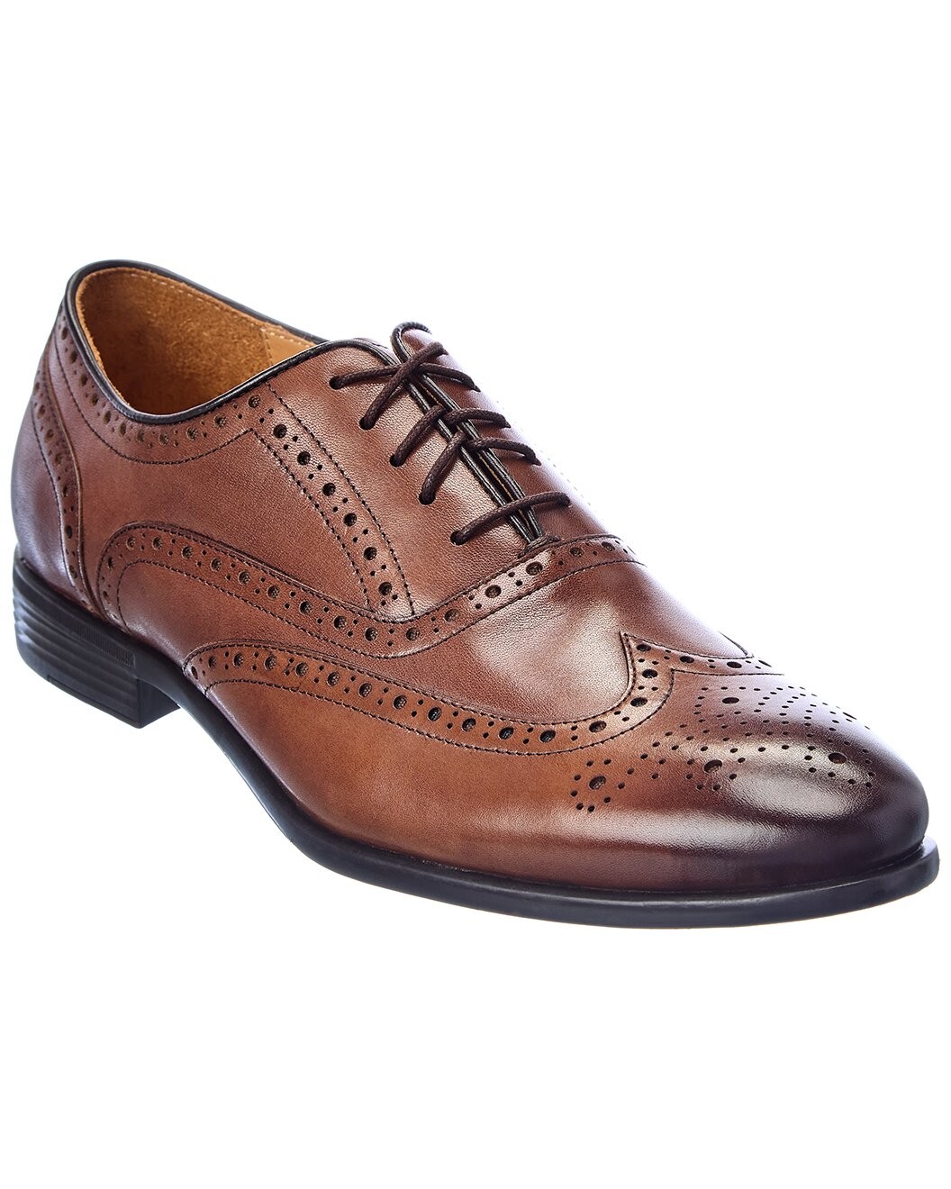 Wingtip Leather Oxford in cognac leather with perforated detailing