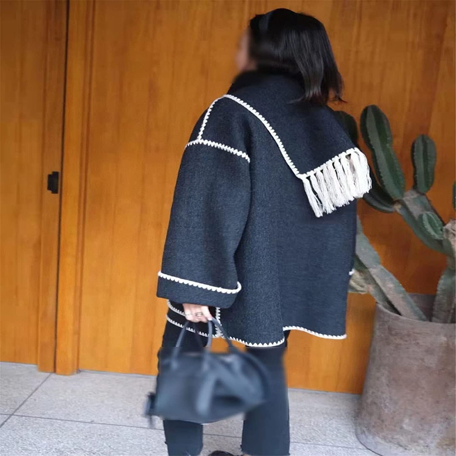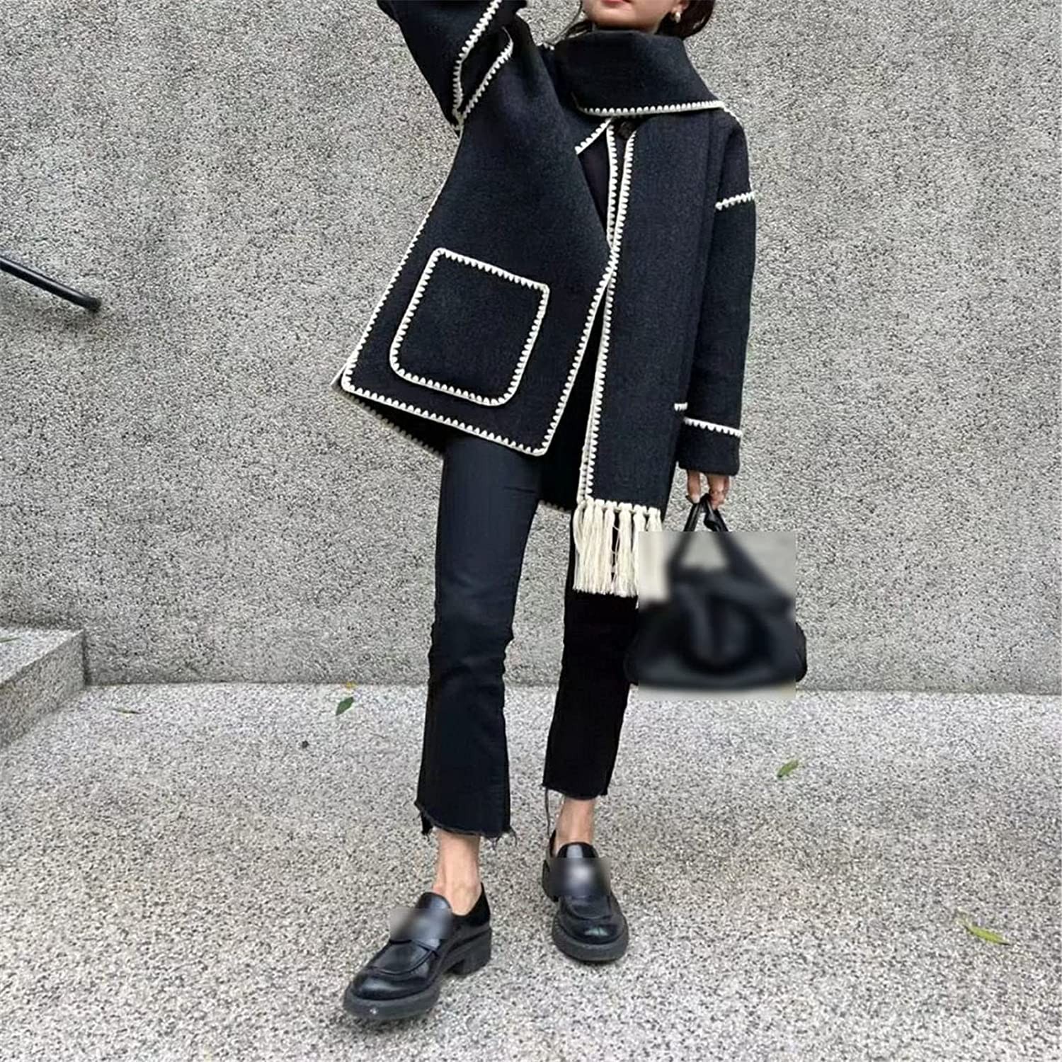 Winter Women's Coat Wool Polyester Full Sleeve Single Breasted Oversized Casual Scarf Collar Trench Coat