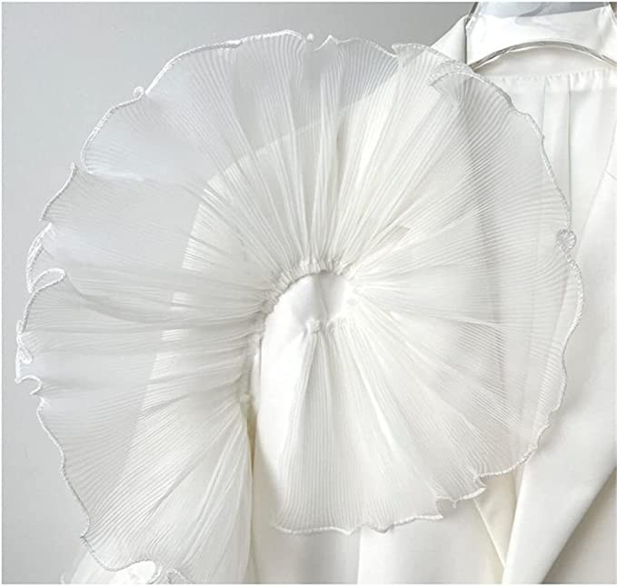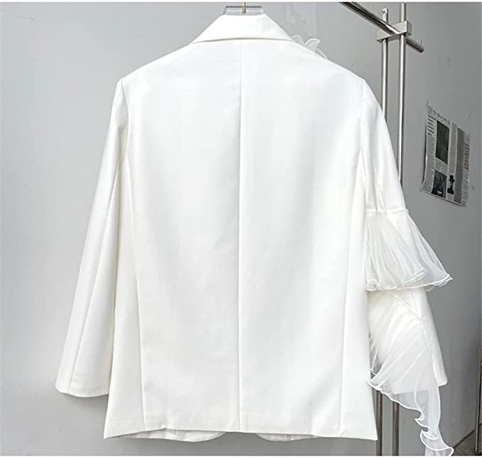 Women White Ruffles Big Size Blazer New Lapel Long Sleeve Loose Fit Jacket Fashion Tide Spring Autumn