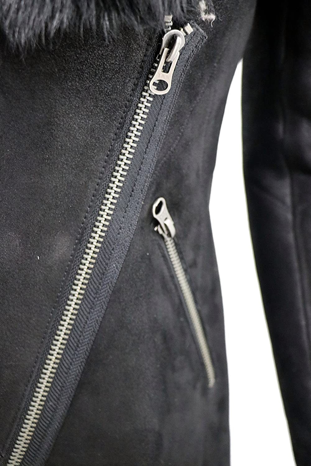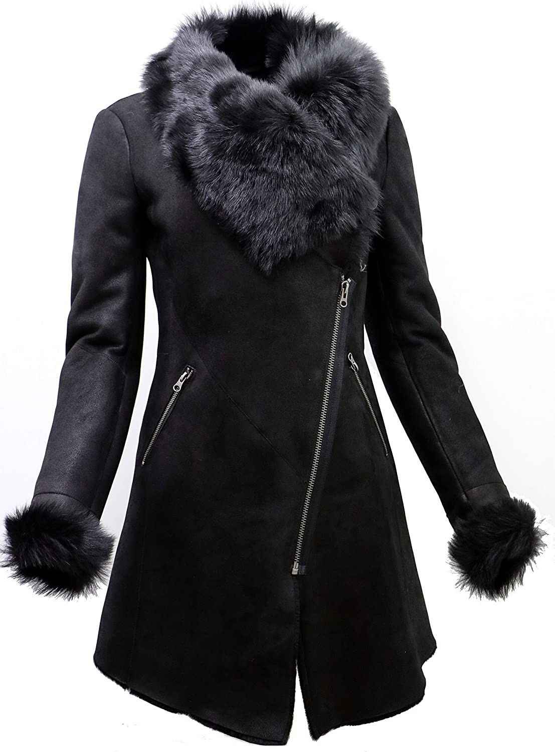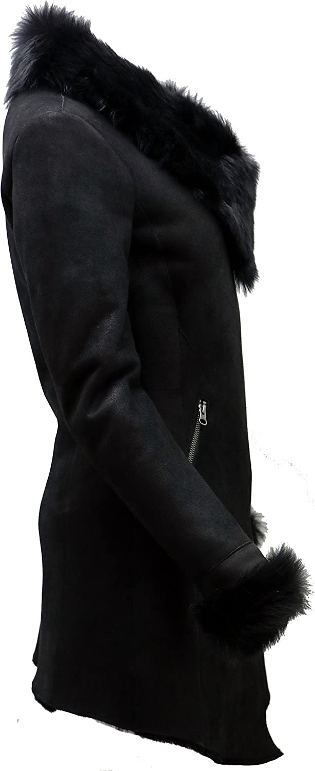 Women's Black Suede Merino Sheepskin Leather Coat With Toscana Collar