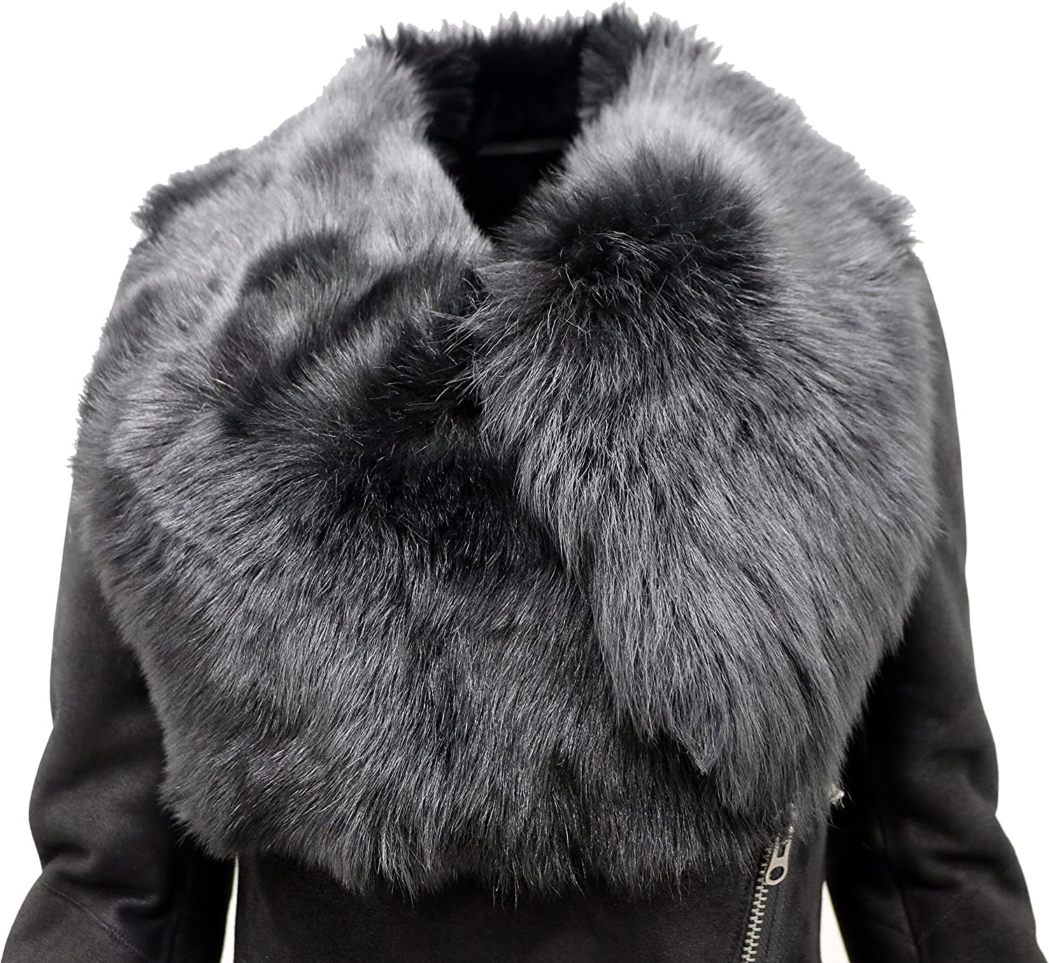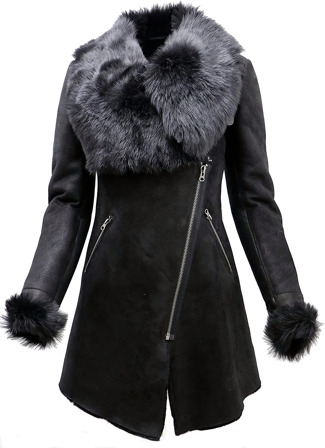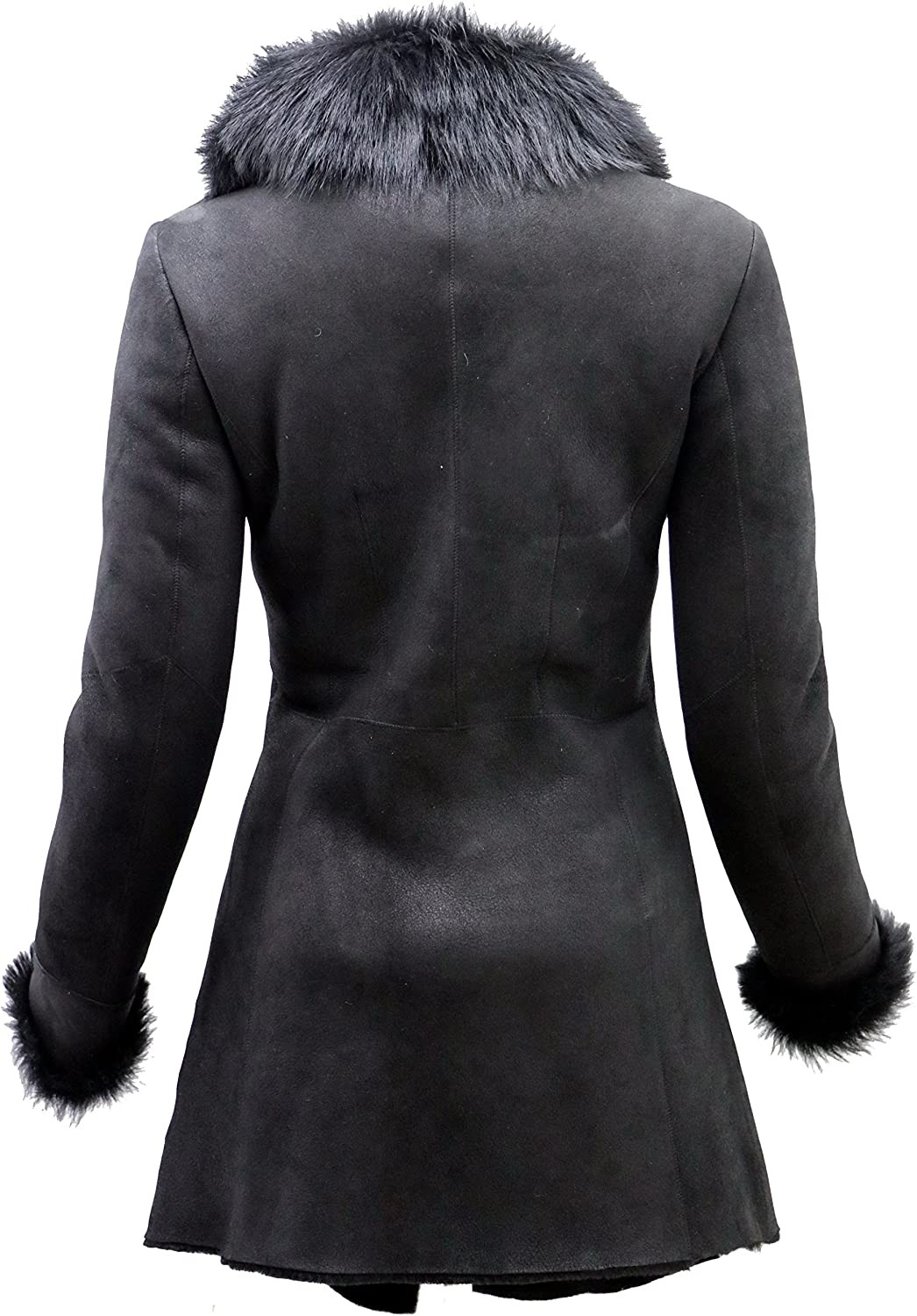 Women's Black Suede Merino Sheepskin Leather Coat With Toscana Collar