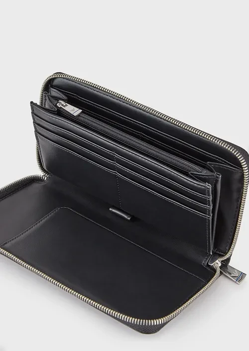 A collection of accessories created to satisfy the requirements of the Emporio Armani man who demands stylish, work-ready looks. Their contoured metal eagle logo gives the essential designs added charm. Functional wallet with clean lines. A practical and refined accessory with convenient internal compartments for organising your cards, documents and banknotes. Full-zip fastening and metal logo with contoured eagle. Dimensions: 21.5 x 11 x 2.5 cm.