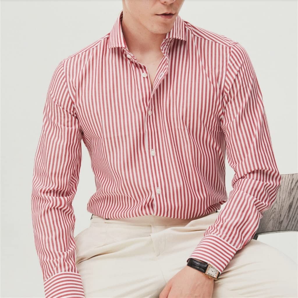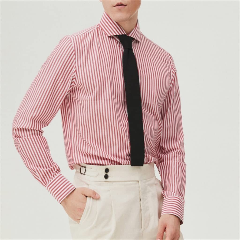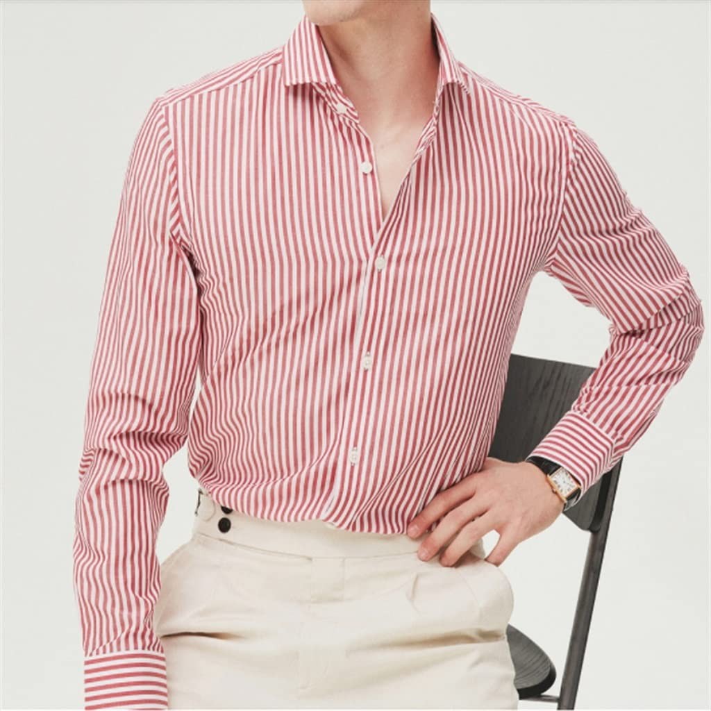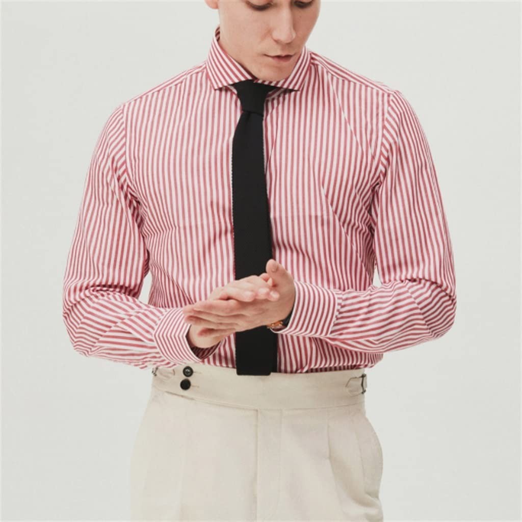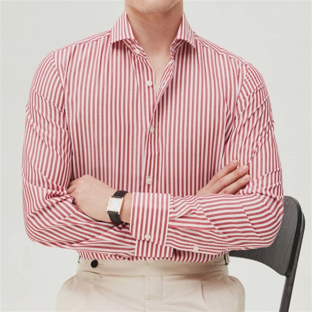 YKBTP Men's Casual Business Striped Dress Shirts Suits Long Sleeve Shirts Spring Autumn (Color : Red, Size : 39 Code)