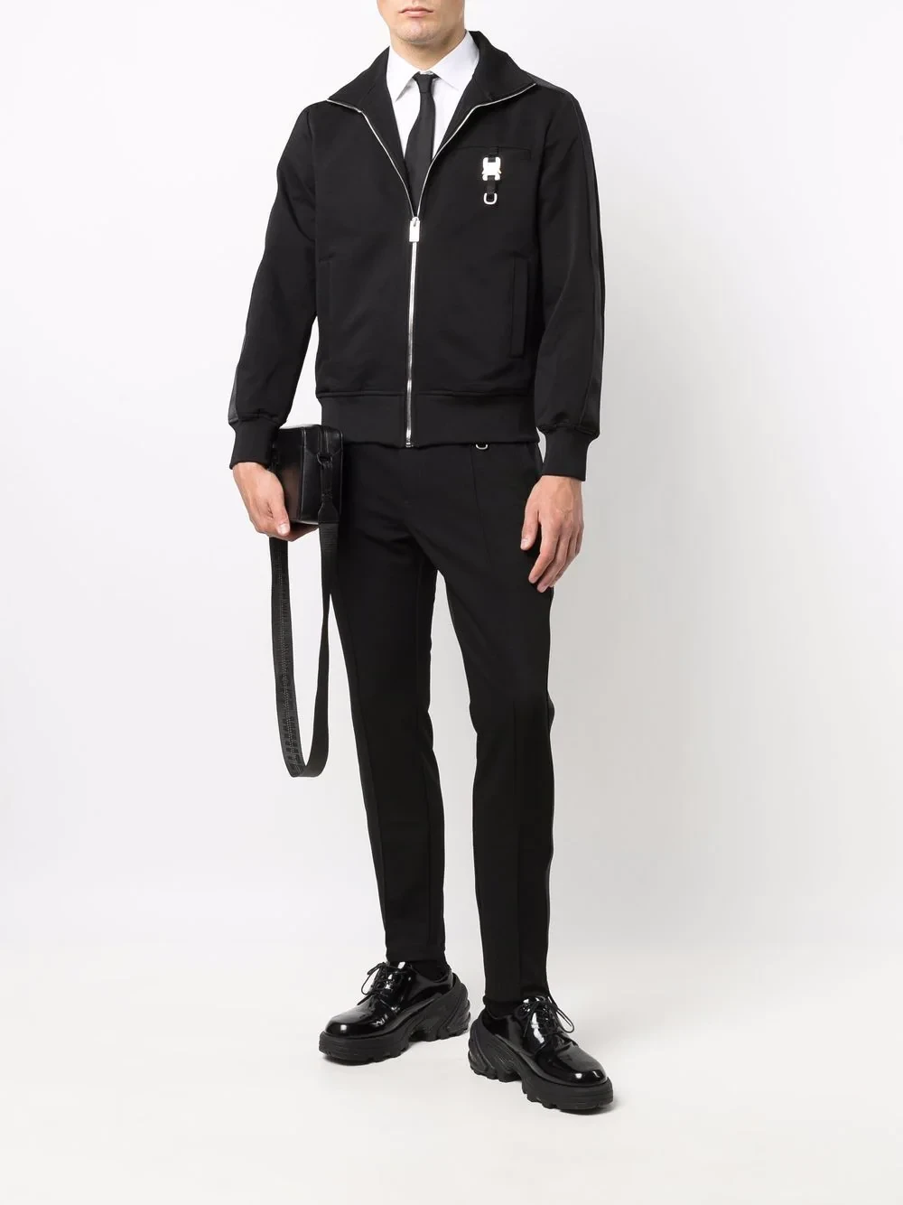 Infused with the brand's iconic buckle, 1017 Alyx 9SM presents this track jacket. Crafted from cotton-blend, this jacket features a funnel neck, a front zip fastening and stands out thanks to the signature buckle, inspired by a belt or harness closure.